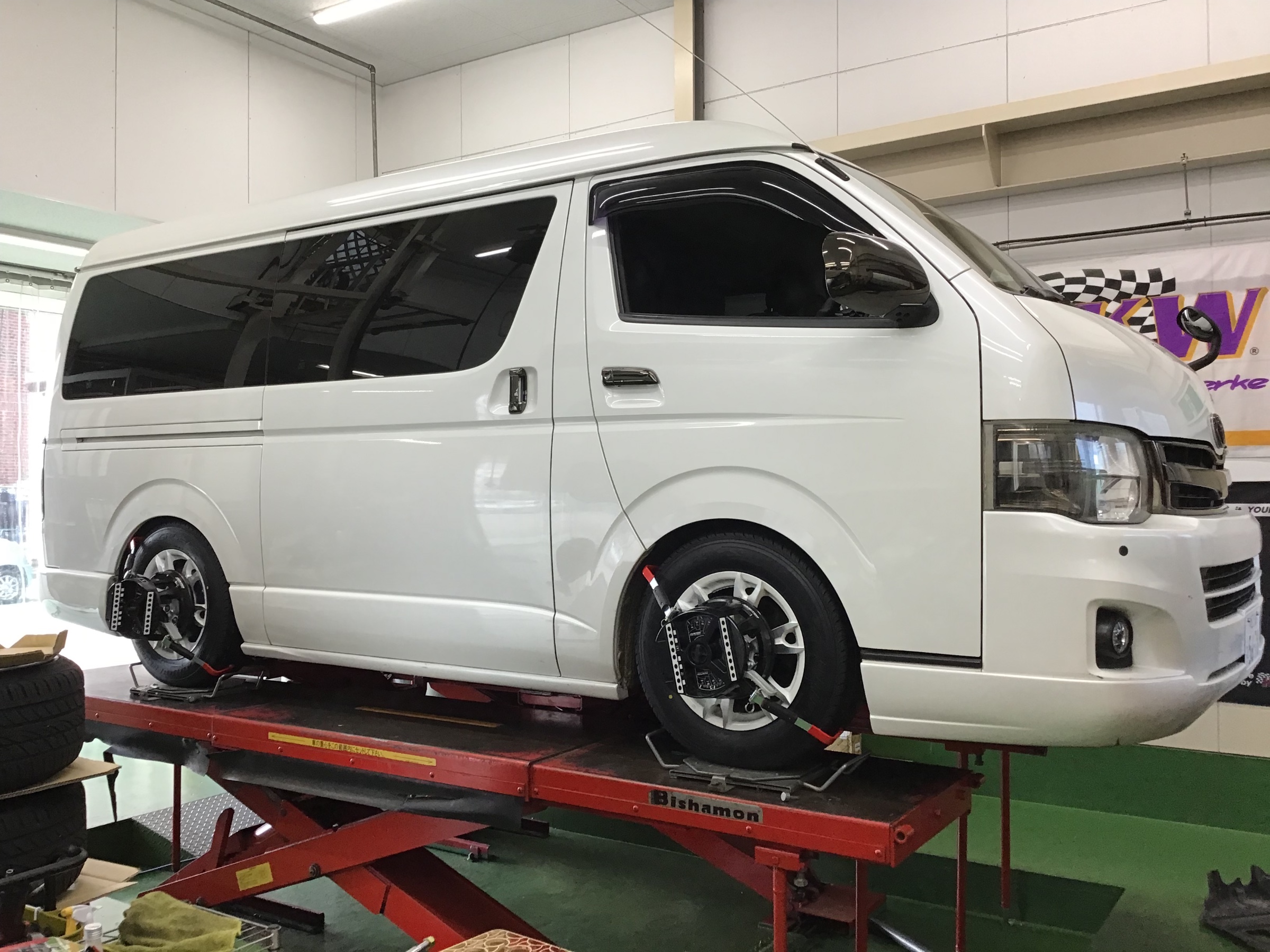 ハイエース タイヤ交換・アライメント測定・調整