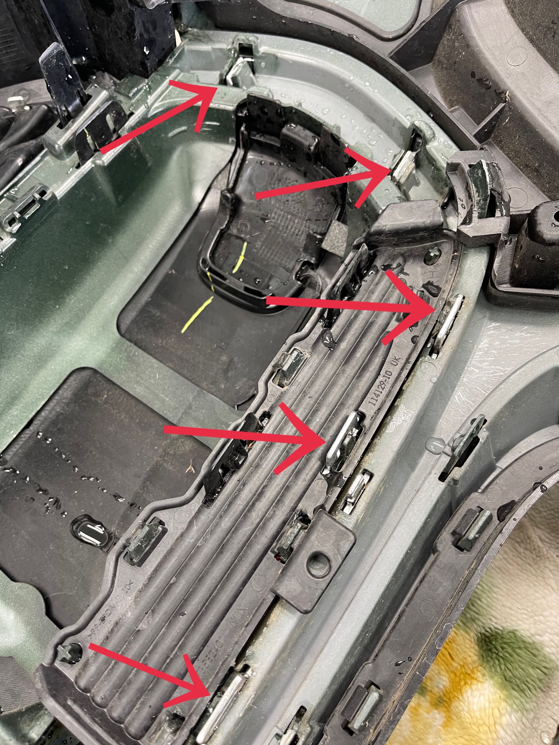 そして矢印部分に爪で止まってるので1周バキバキっと外していきます!