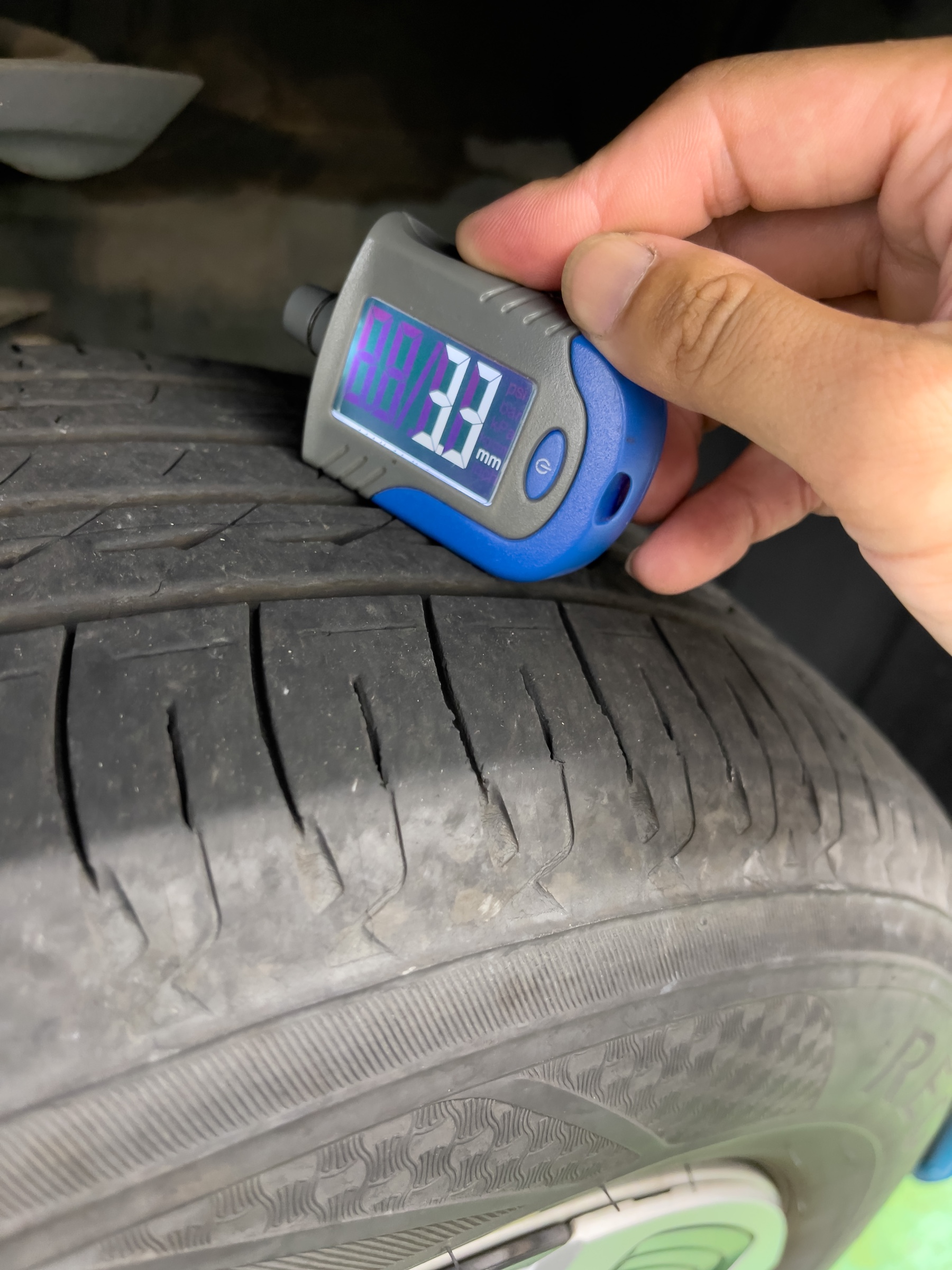 今回はタイヤの残溝チェックからすたーとです。