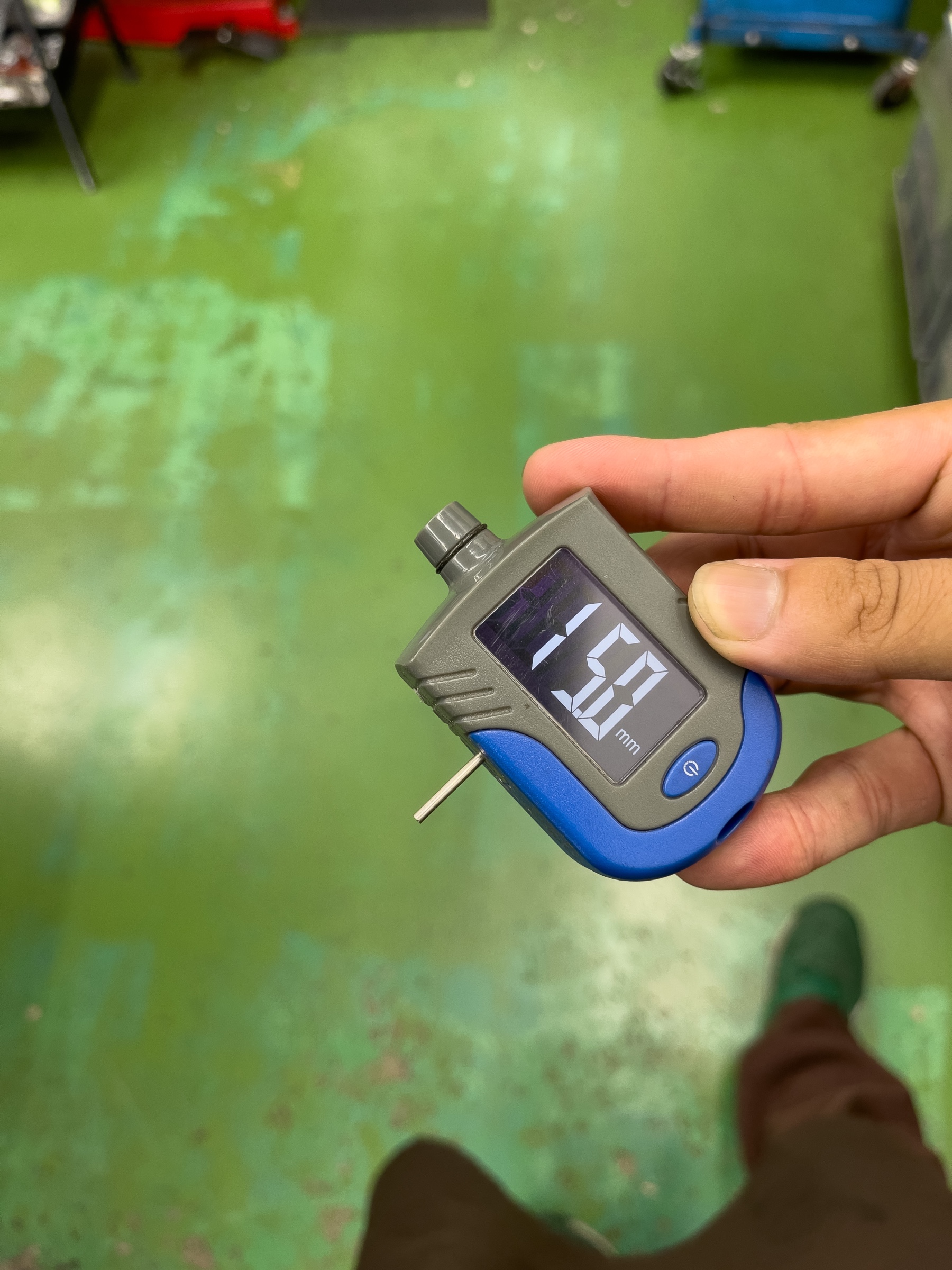 あ、これデプスゲージっていってシルバーの針みたいなので溝を測る機械です!