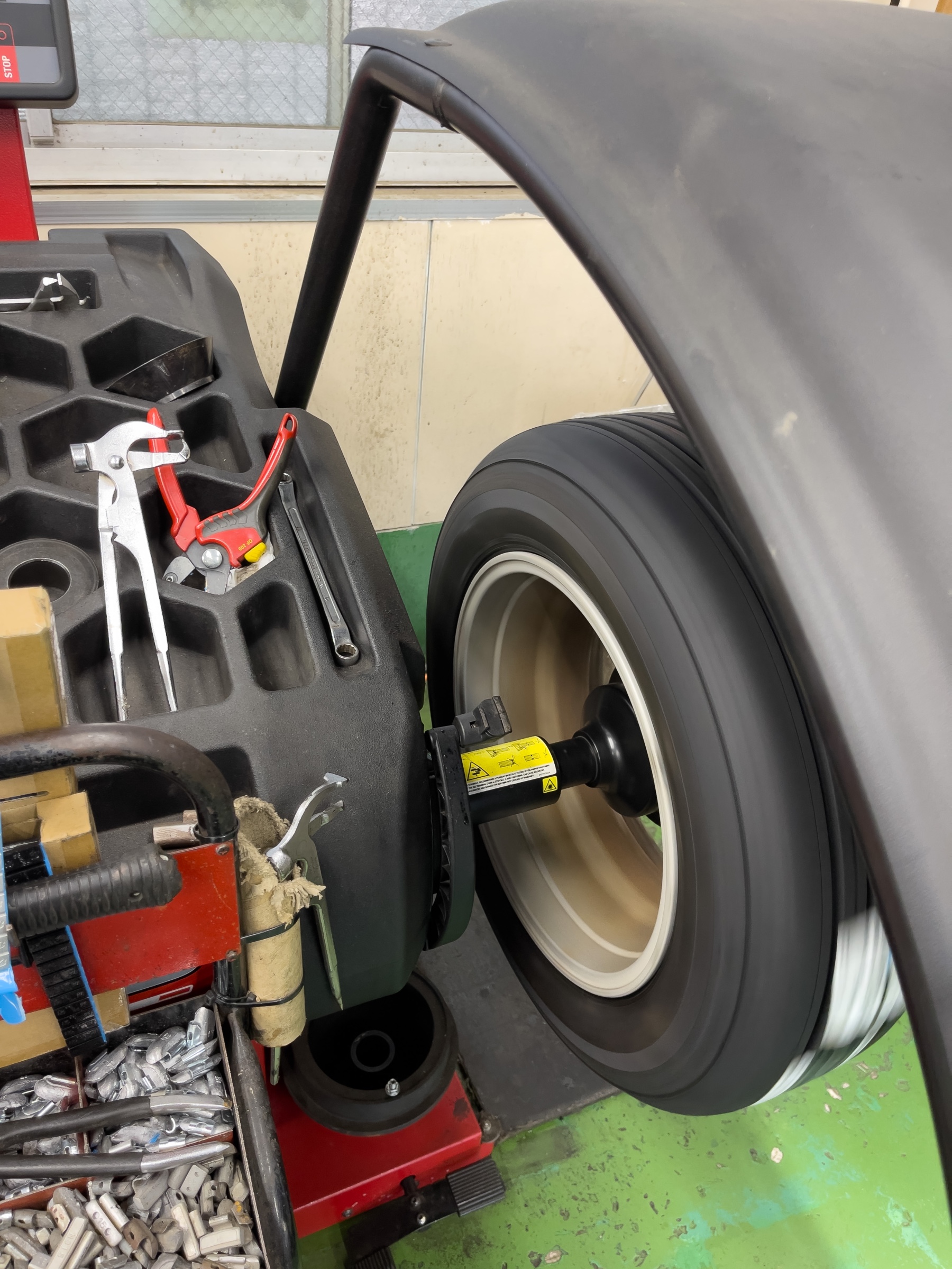 今回のタイヤホイールは内側10g貼り付けまぁす。