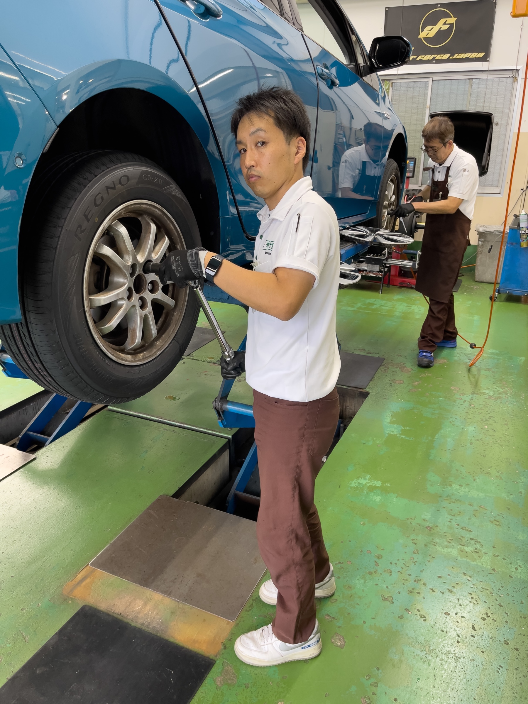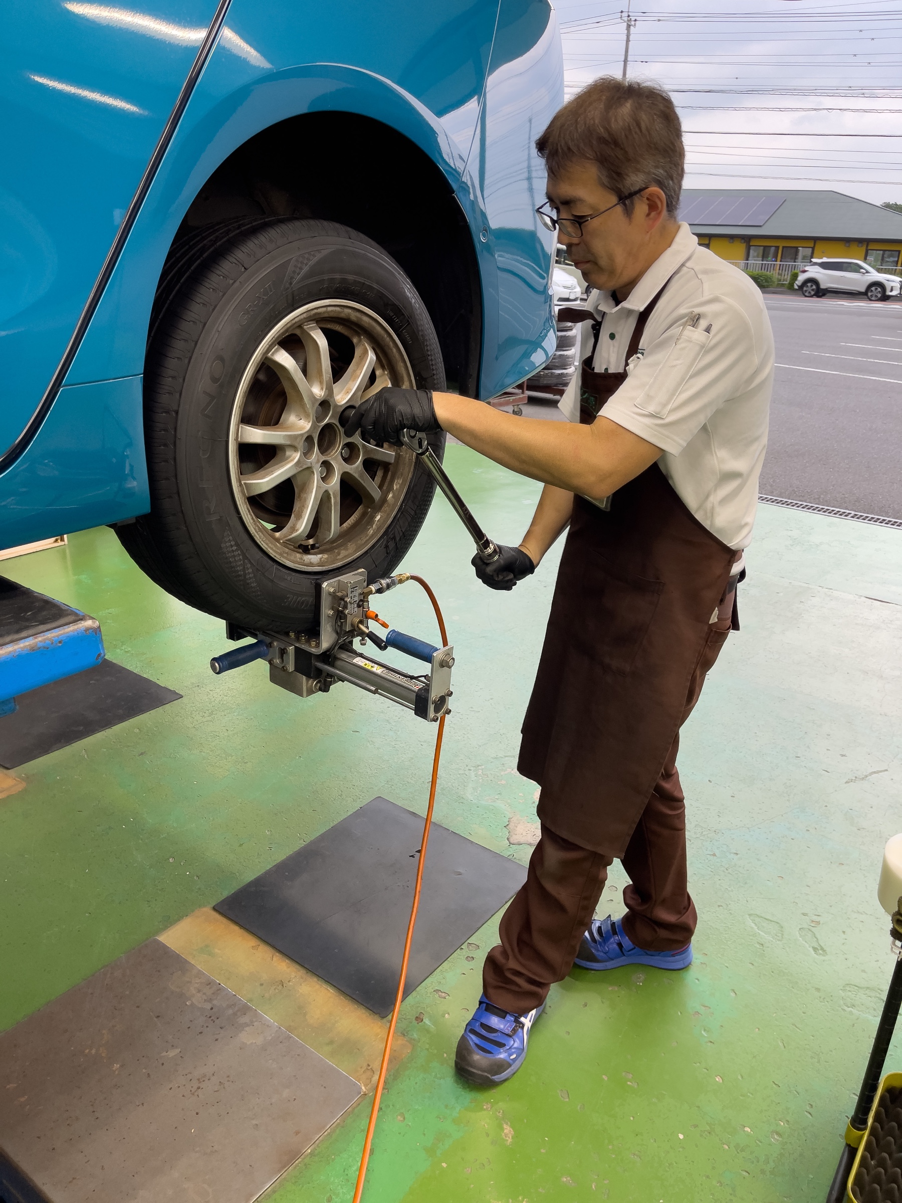 センターフィットで取付作業が終わったら最後に1人が最終確認で4本トルクチェック!