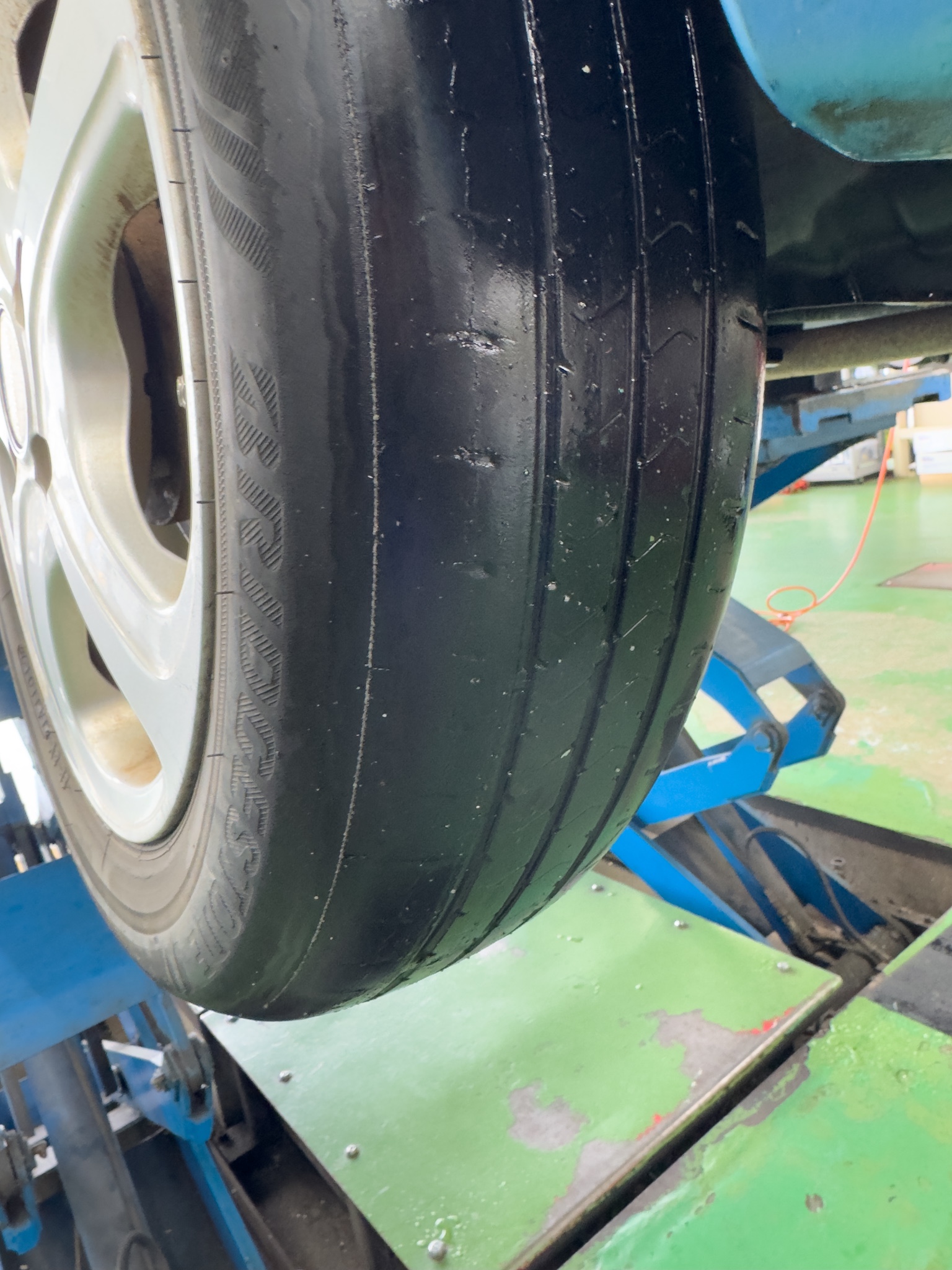 交換前のタイヤはーっと...