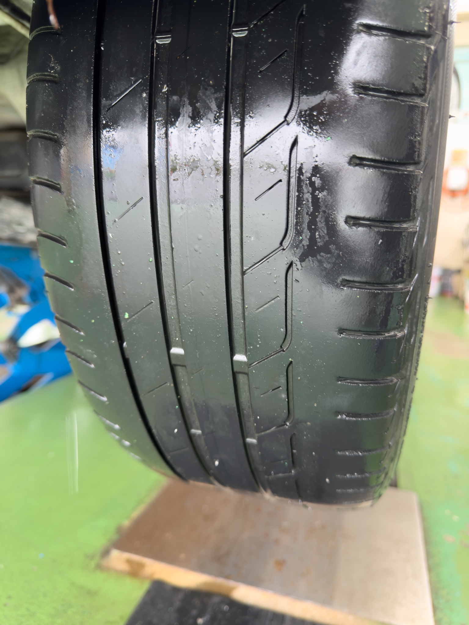 タイヤはご覧の通りいい感じに減ってました。