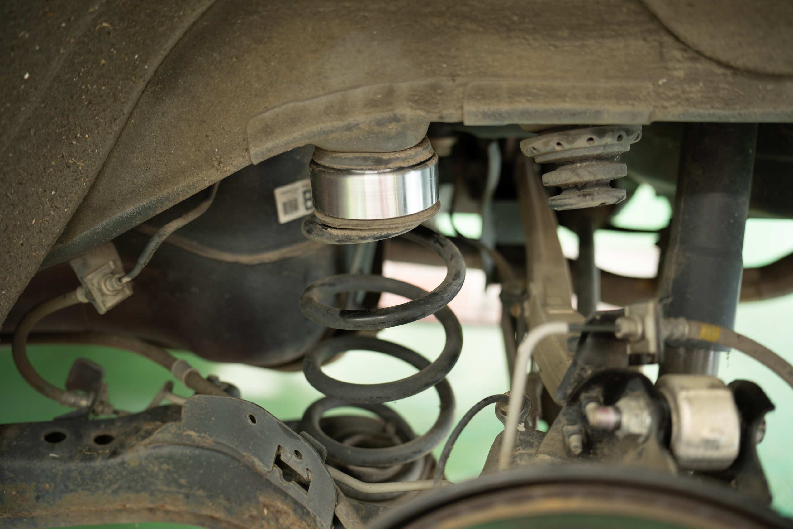 リアはスプリングに挟み込み、フロントはアッパーマウントにスペーサーを