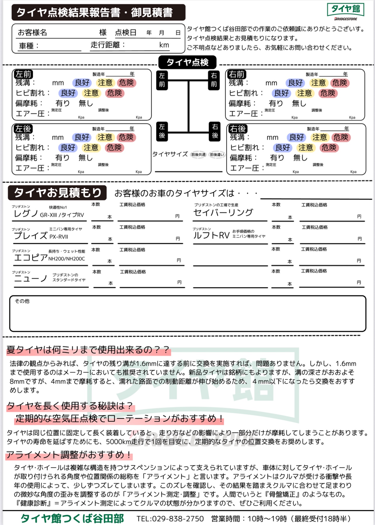 今谷田部店では安全点検用紙に続き