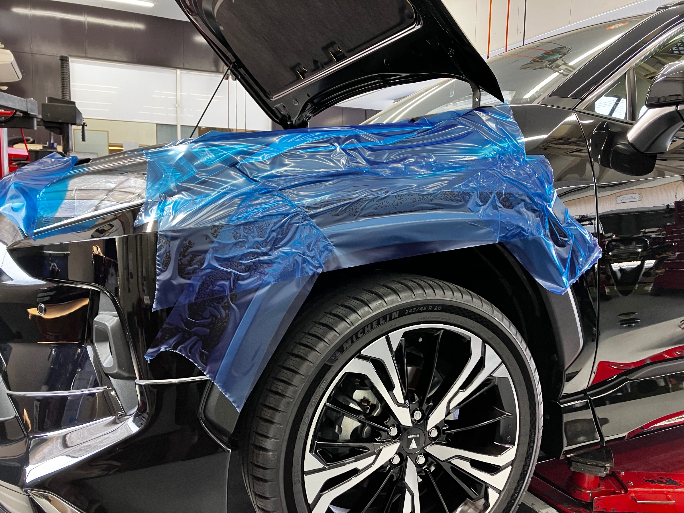 まずは、大切な車に保護テープをしてキズなど
