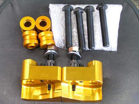 タイヤの位置を上に上げる仕組みによりストロークを稼ぎ、ショックの底付きがしずらくするブロックです。