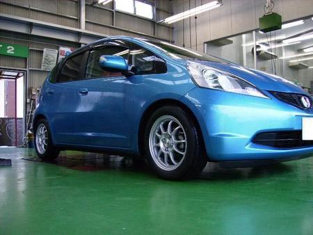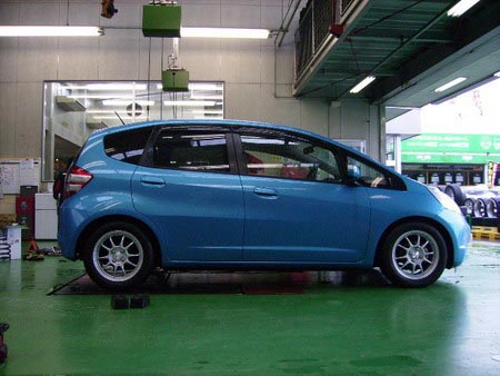 Y様のフィットにタイヤ&ホイール&ダウンサスの取付けをしました。