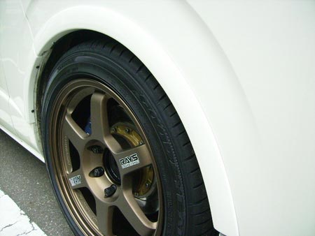 8JJのホイールサイズがピッタリツライチに収まります。(車体の固体差により若干の差異があります。)オーバーフェンダーの出幅は片側10mmです。