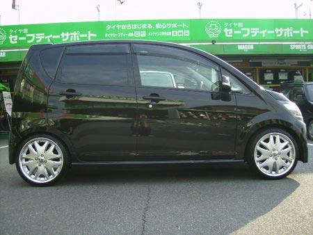F様のムーヴにタイヤ&ホイール&ダウンサスの取付けをしました。