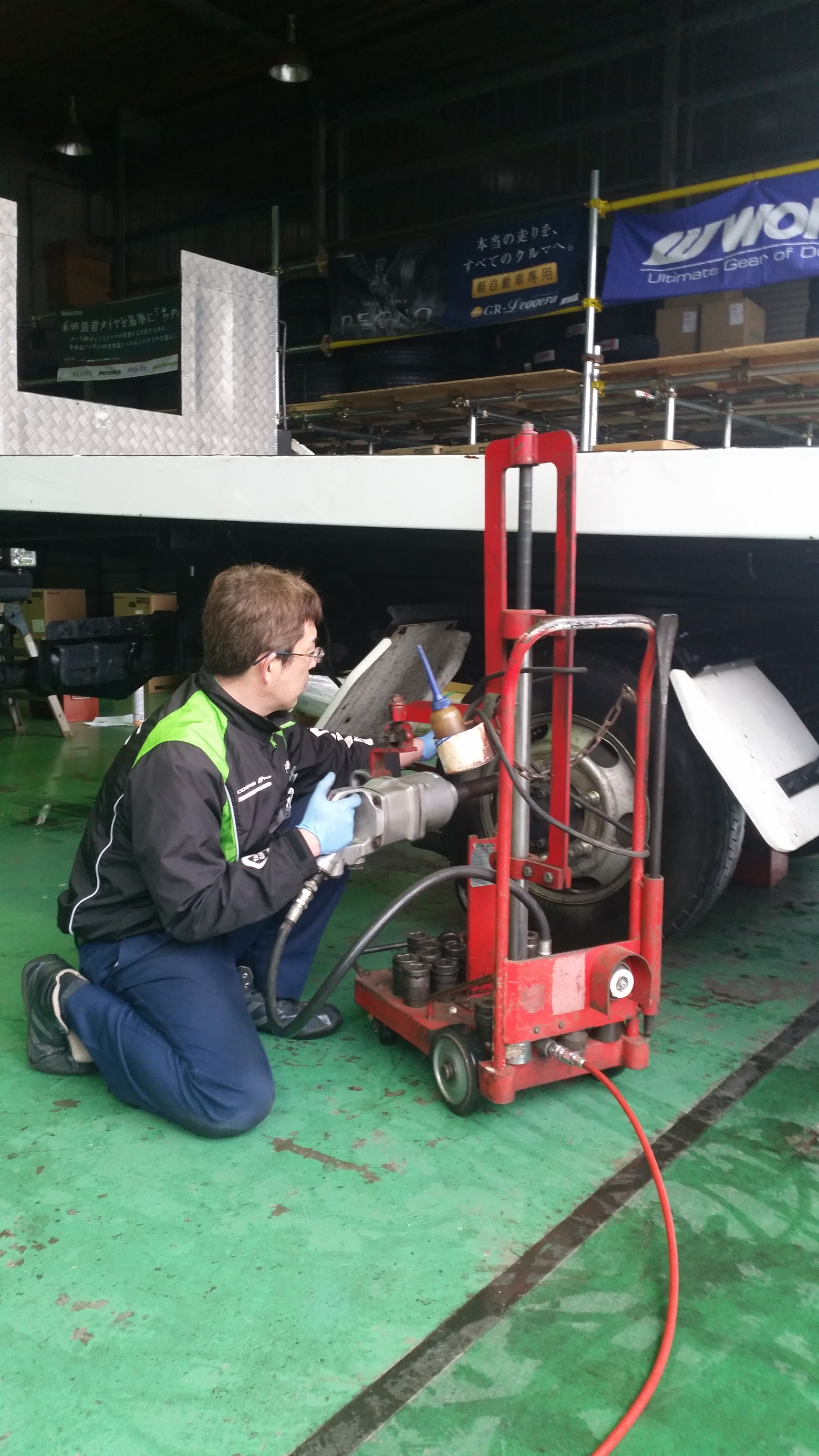 重いです(*◊*;)普段あまりトラックのタイヤ交換