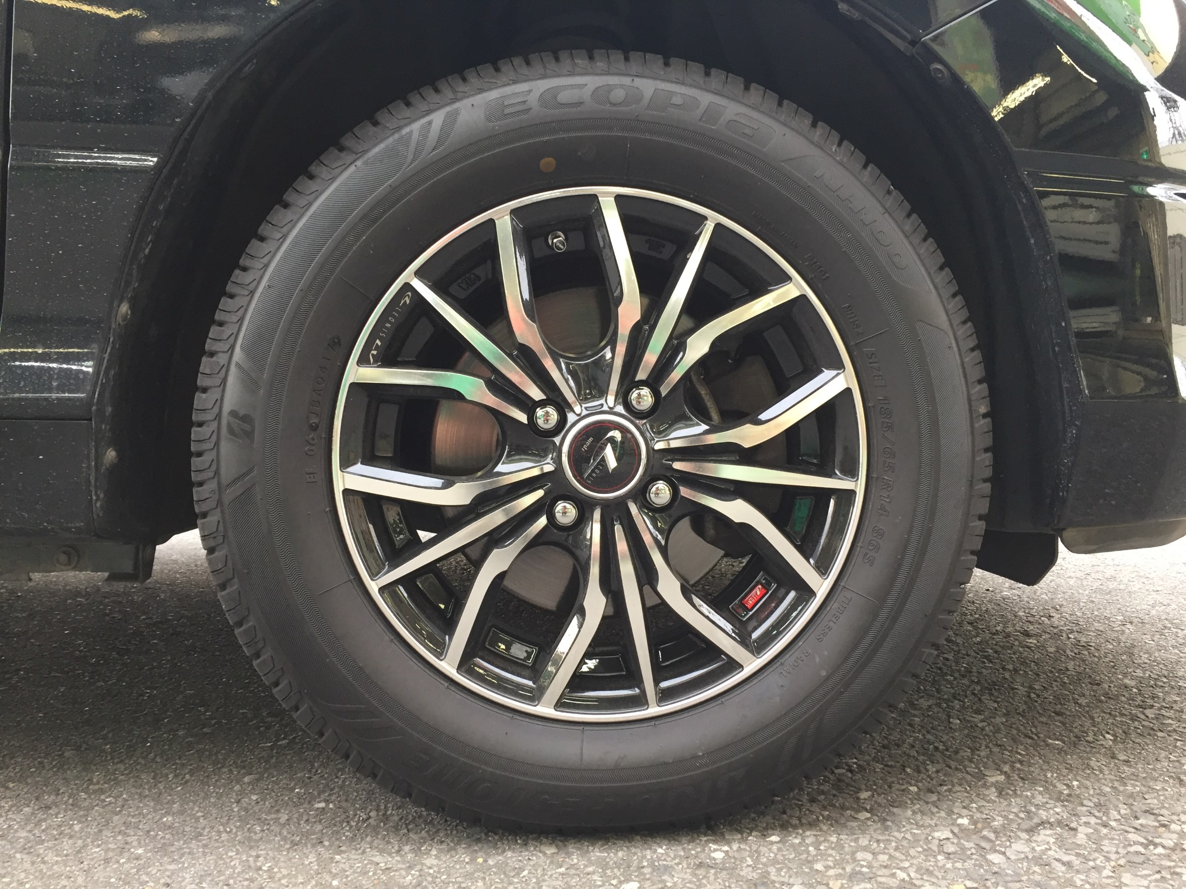 純正と違いかなり印象が変わり、ホイールが黒ベ