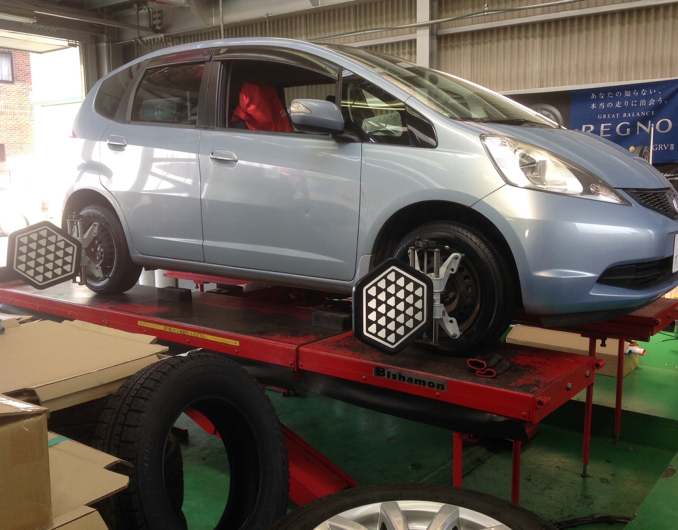 新しいタイヤをより長く、使用していただく為、アライメントも、行いました。