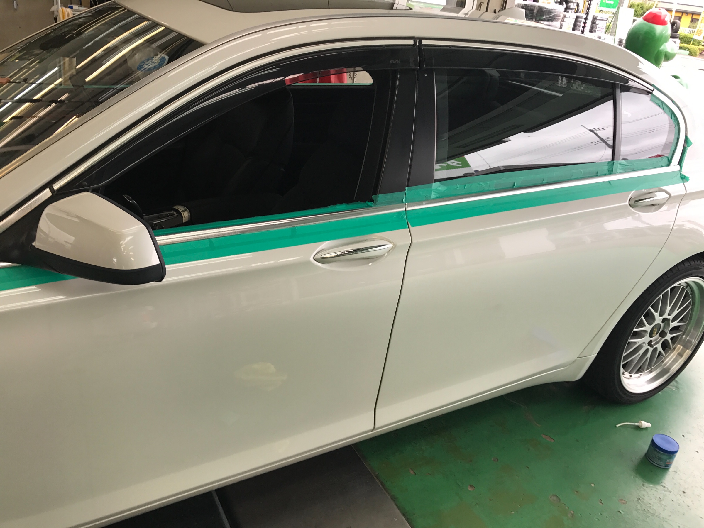 研磨剤も含まれてるのでマスキングテープで保護し、藤枝専務と頑張って磨きました!