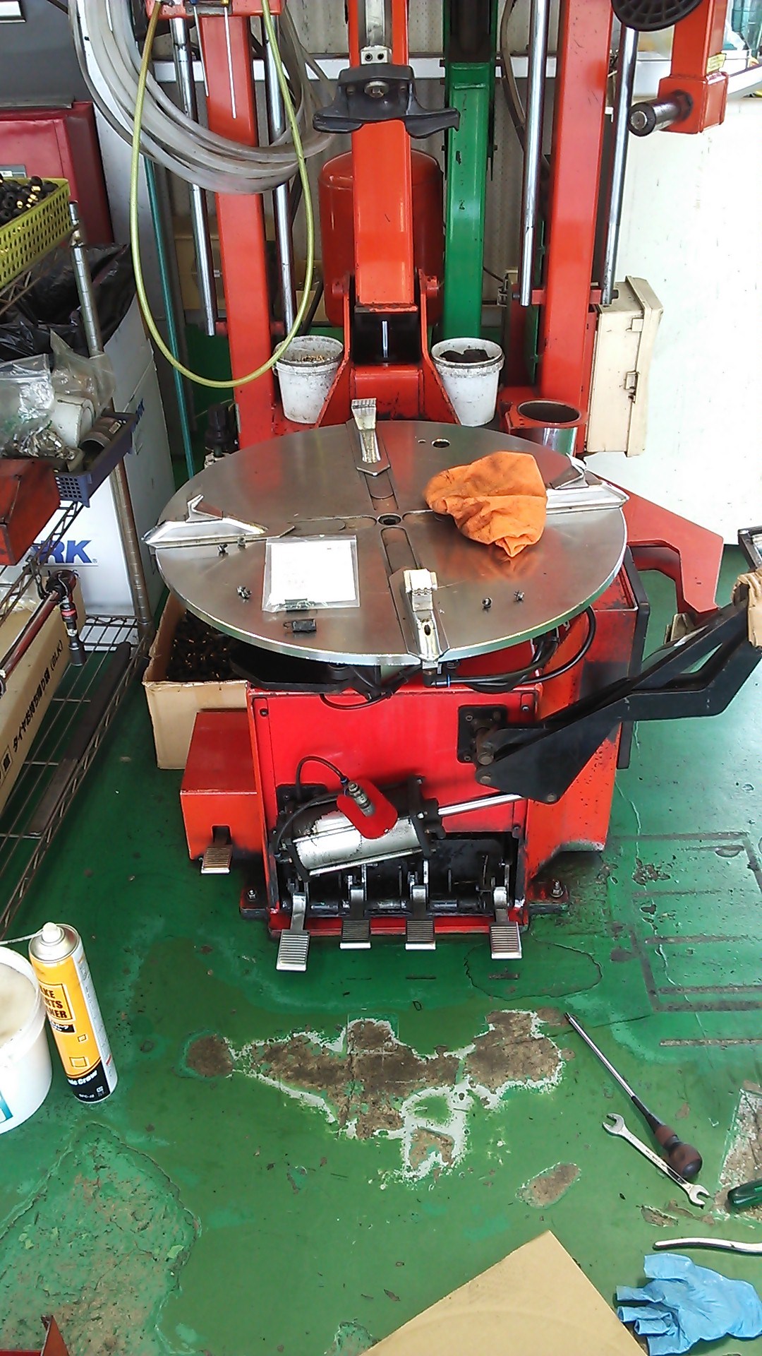 お店のタイヤを交換する機械の一部が壊れたので修理しました。