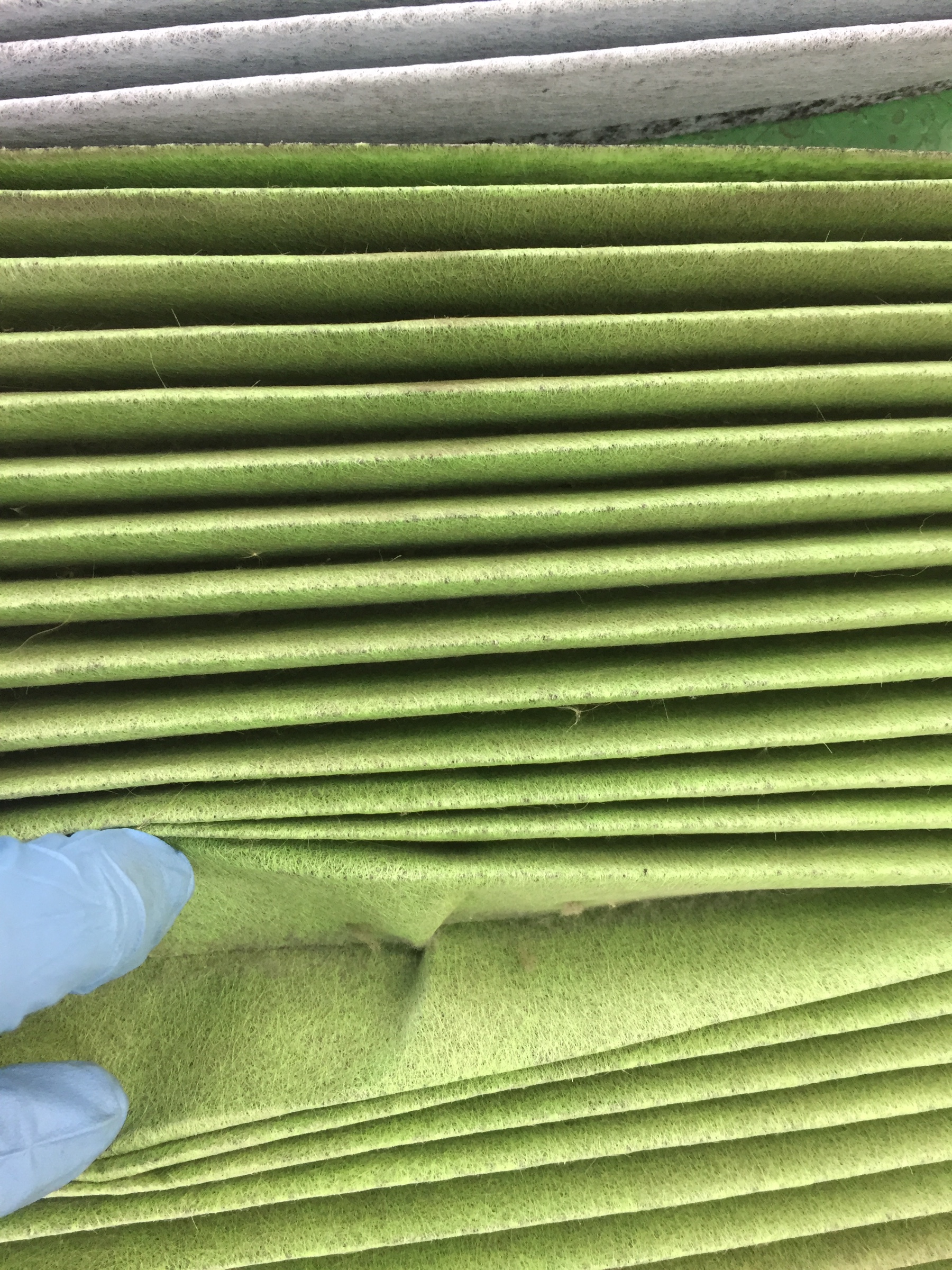 交換前のエアコンフィルター ほこりなどがつまってます。