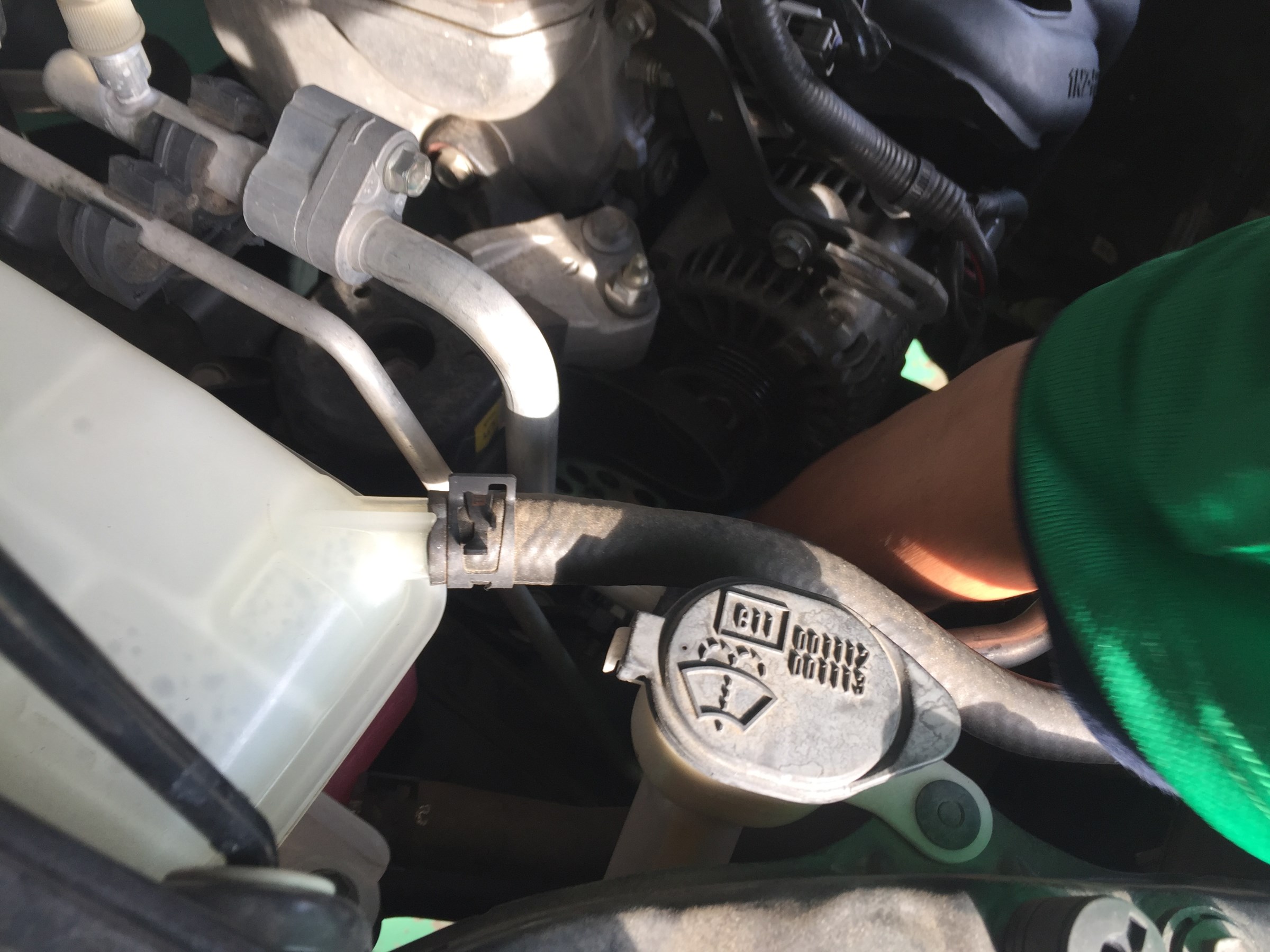 まず最初に オルタネーターのボルトを緩めてベルトをとります。