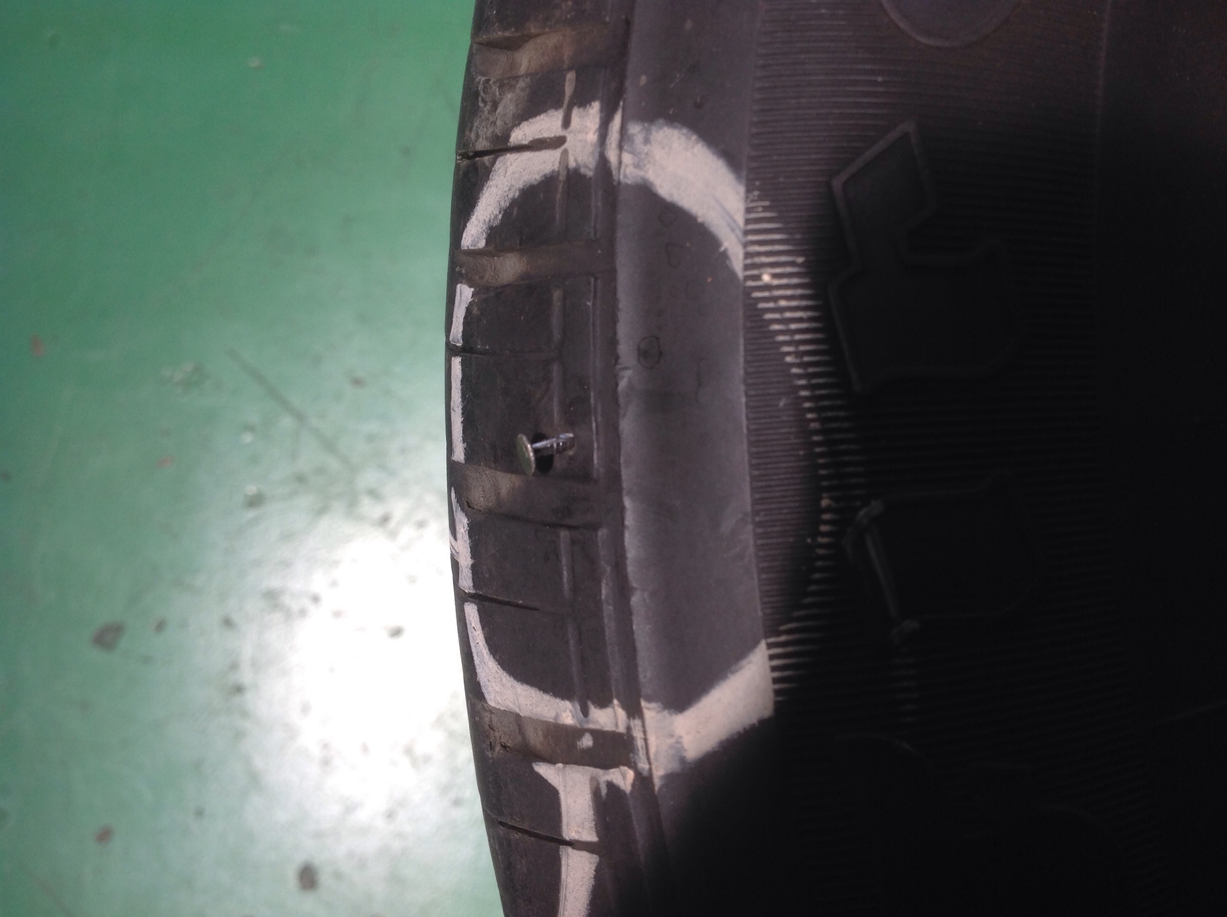 夏タイヤが1本、パンクしていました!(◎_◎;)