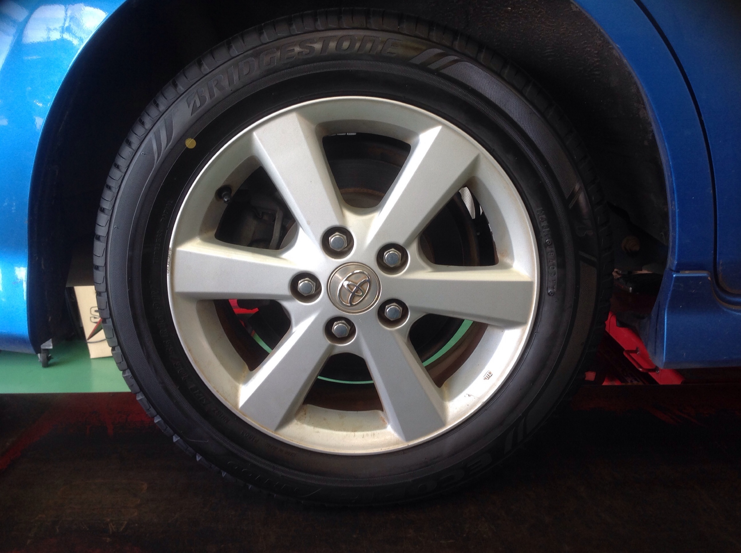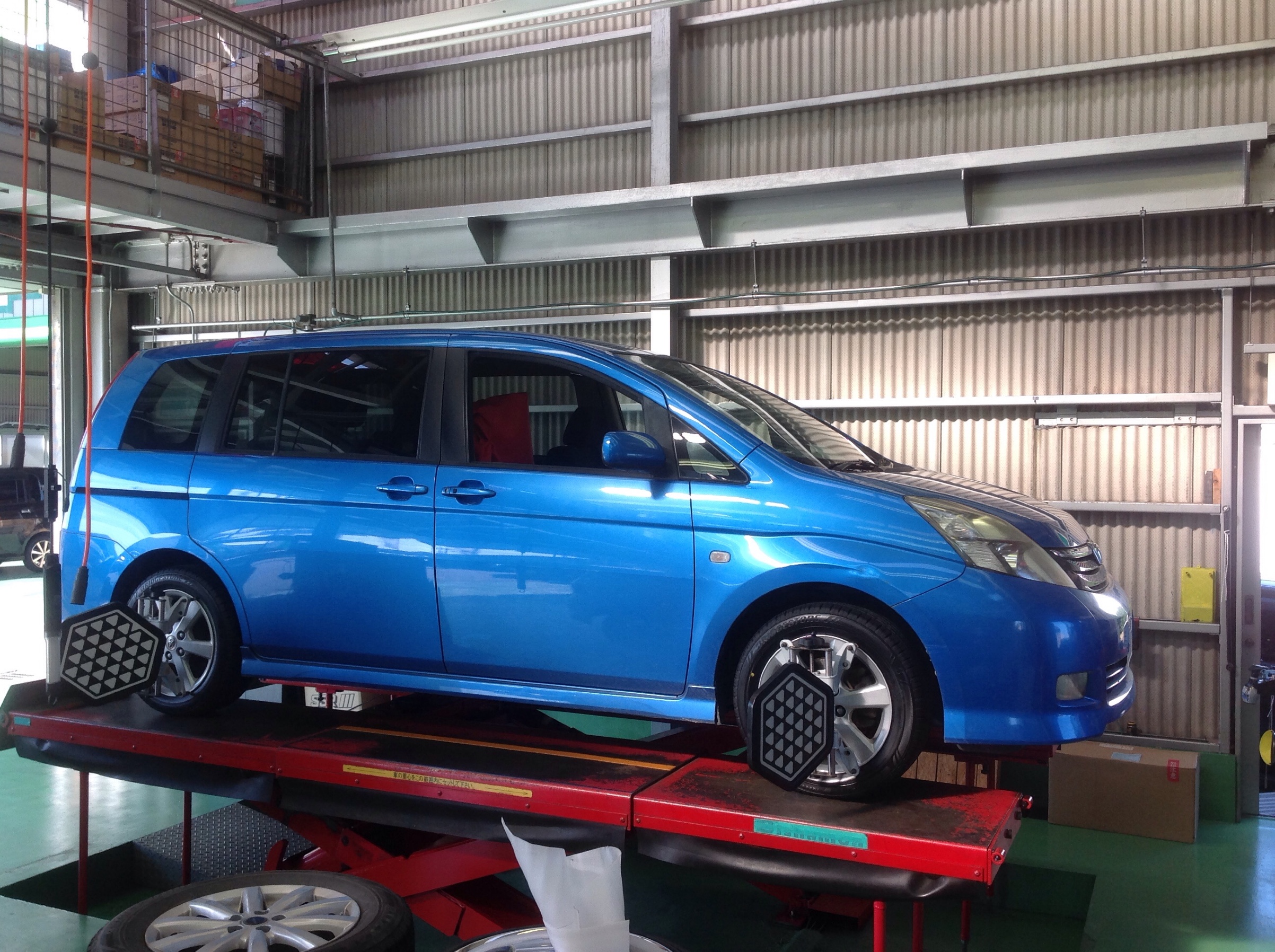 フロントのタイヤが片べりしていたので、アライメント作業を行いました。