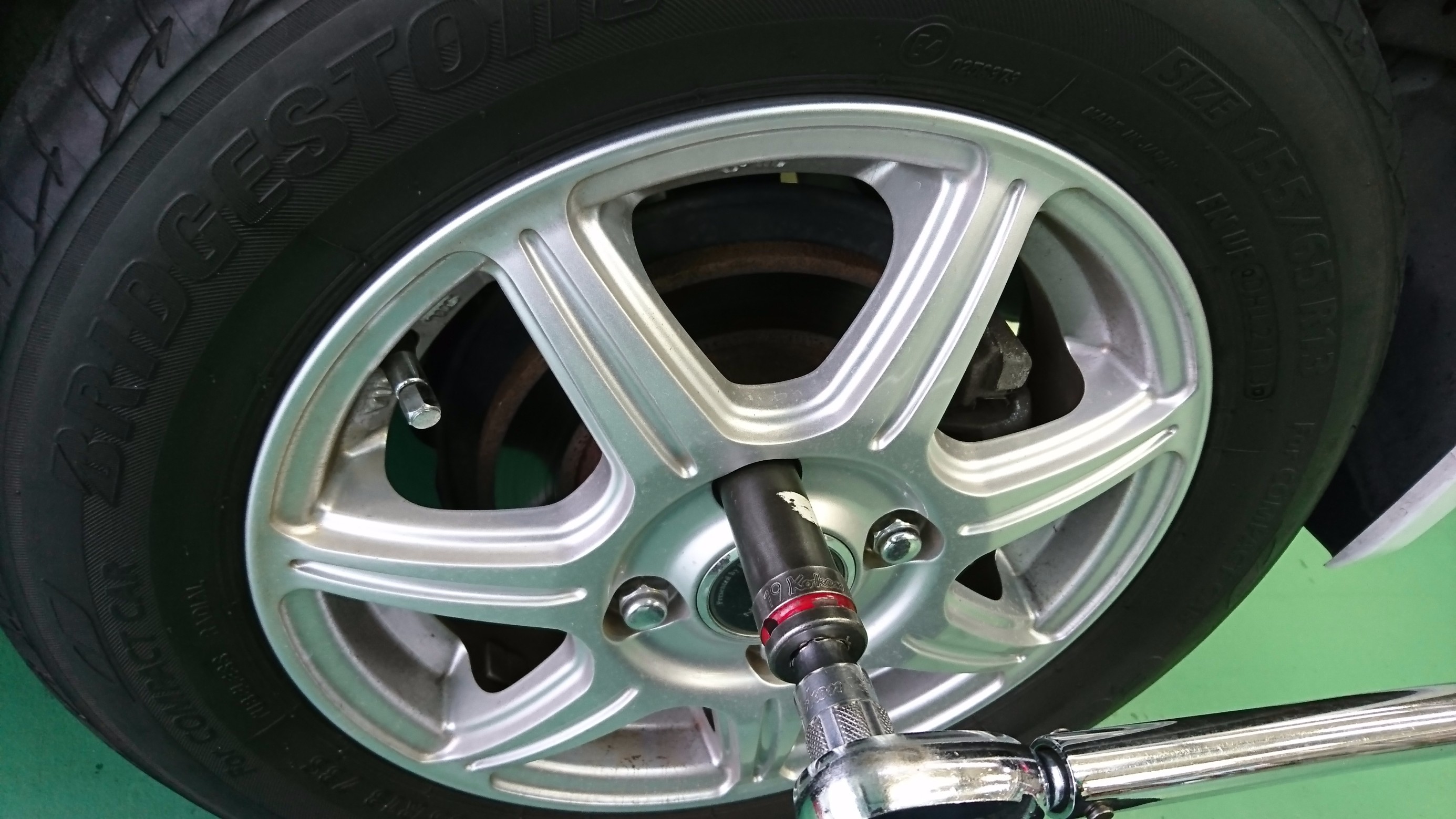 まず最初はホイールのナットのトルク締めの点検です。
