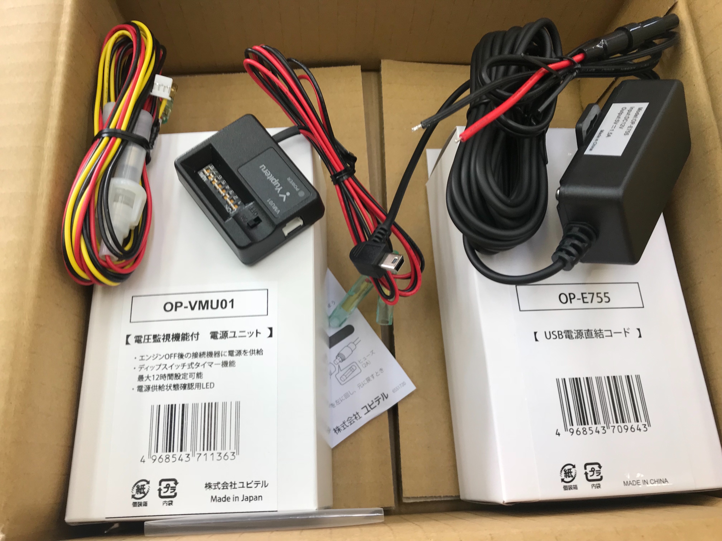 そのまま取り付けしても防犯にはなりますが駐車中も録画したいとの事でオプション品を追加でご注文いただきました!