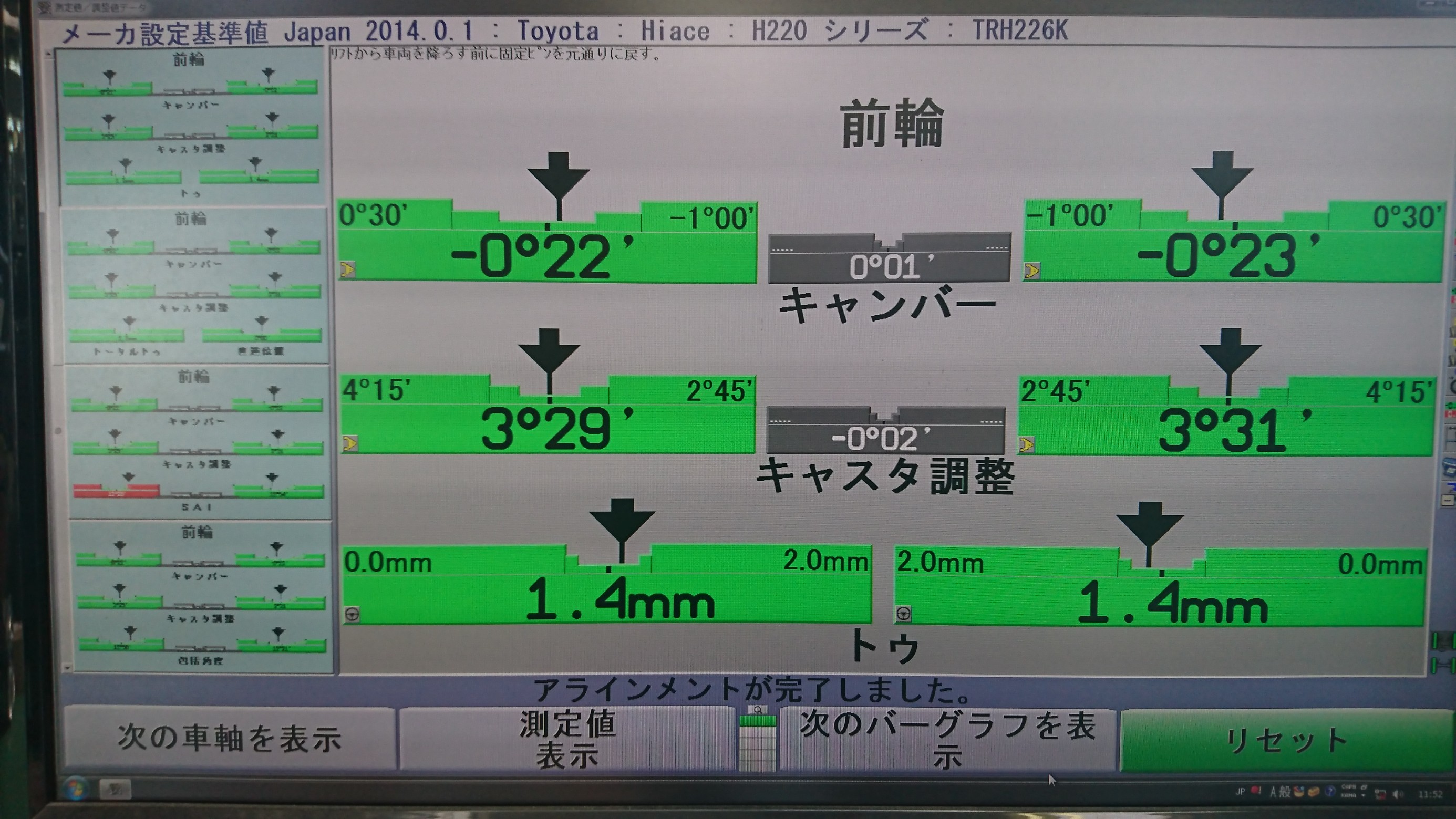 今回作業させて頂くのはハイエースのアライメント調整になります。