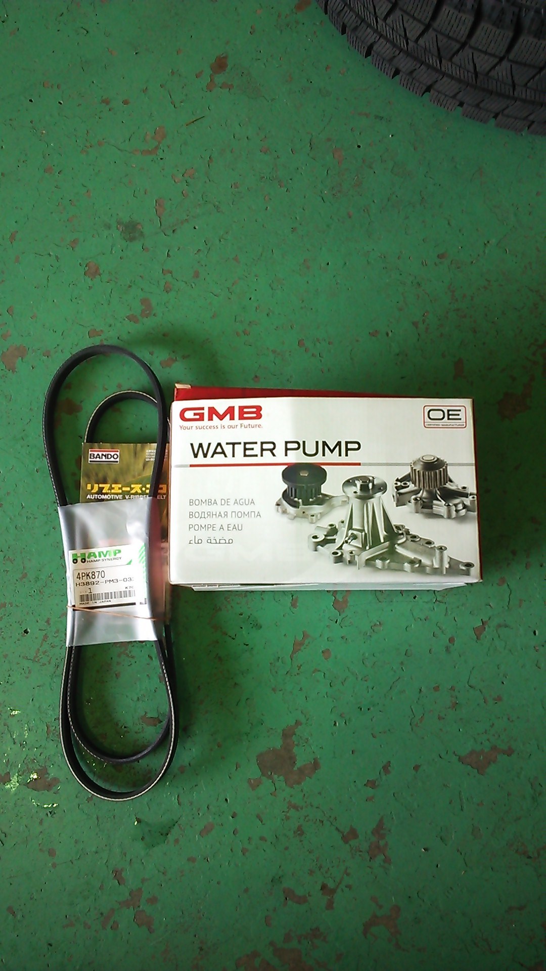 ウォーターポンプとファンベルトの交換です。