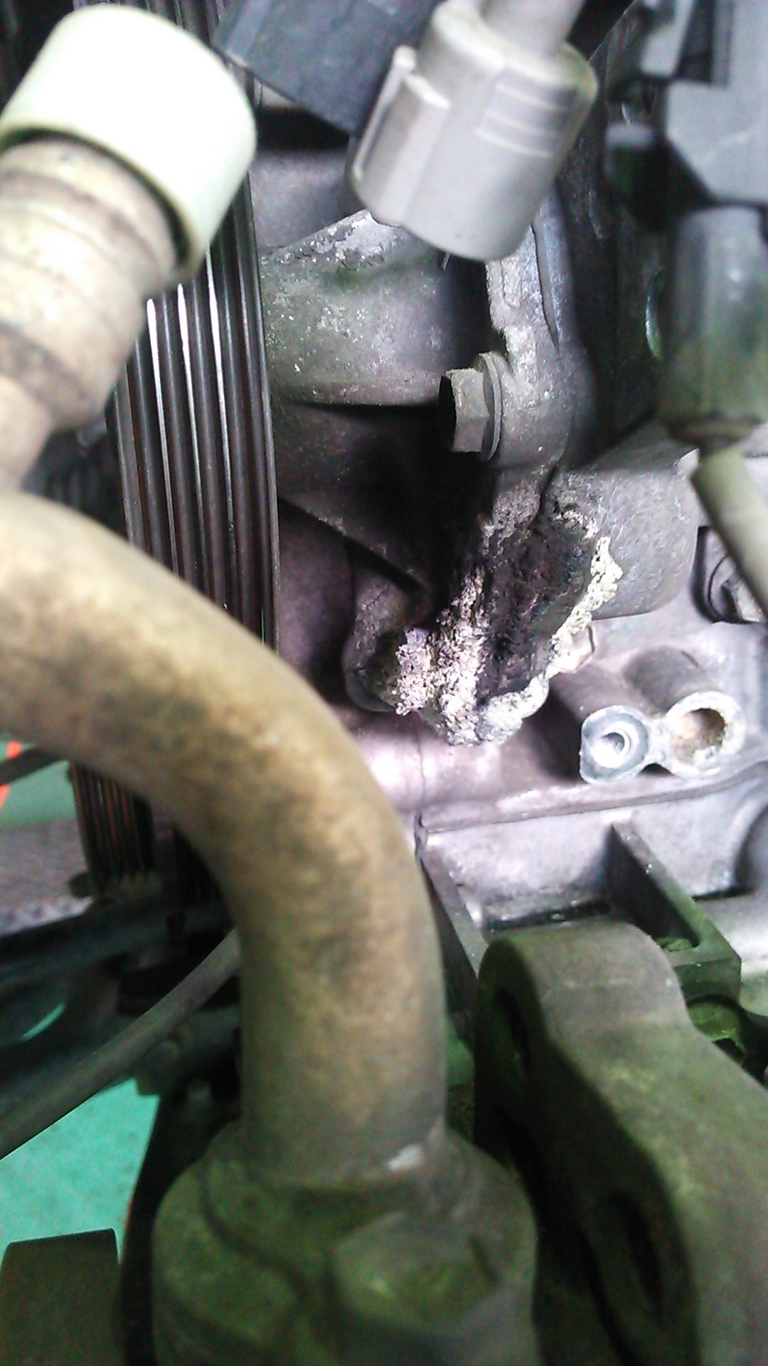 ウォーターポンプから、冷却水が漏れてしまっています。