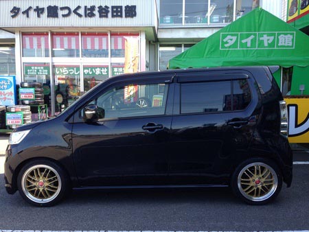 ワゴンRスティングレーにホイールと車高調の取り付けをさせて頂きました。