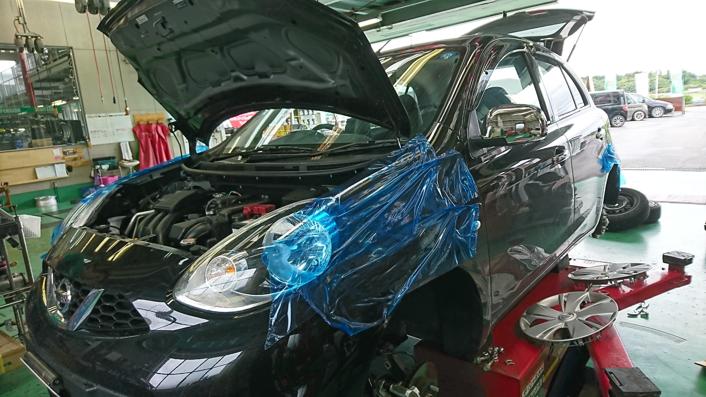 今回ご紹介させていただく作業はマーチの車高調取付けになります。