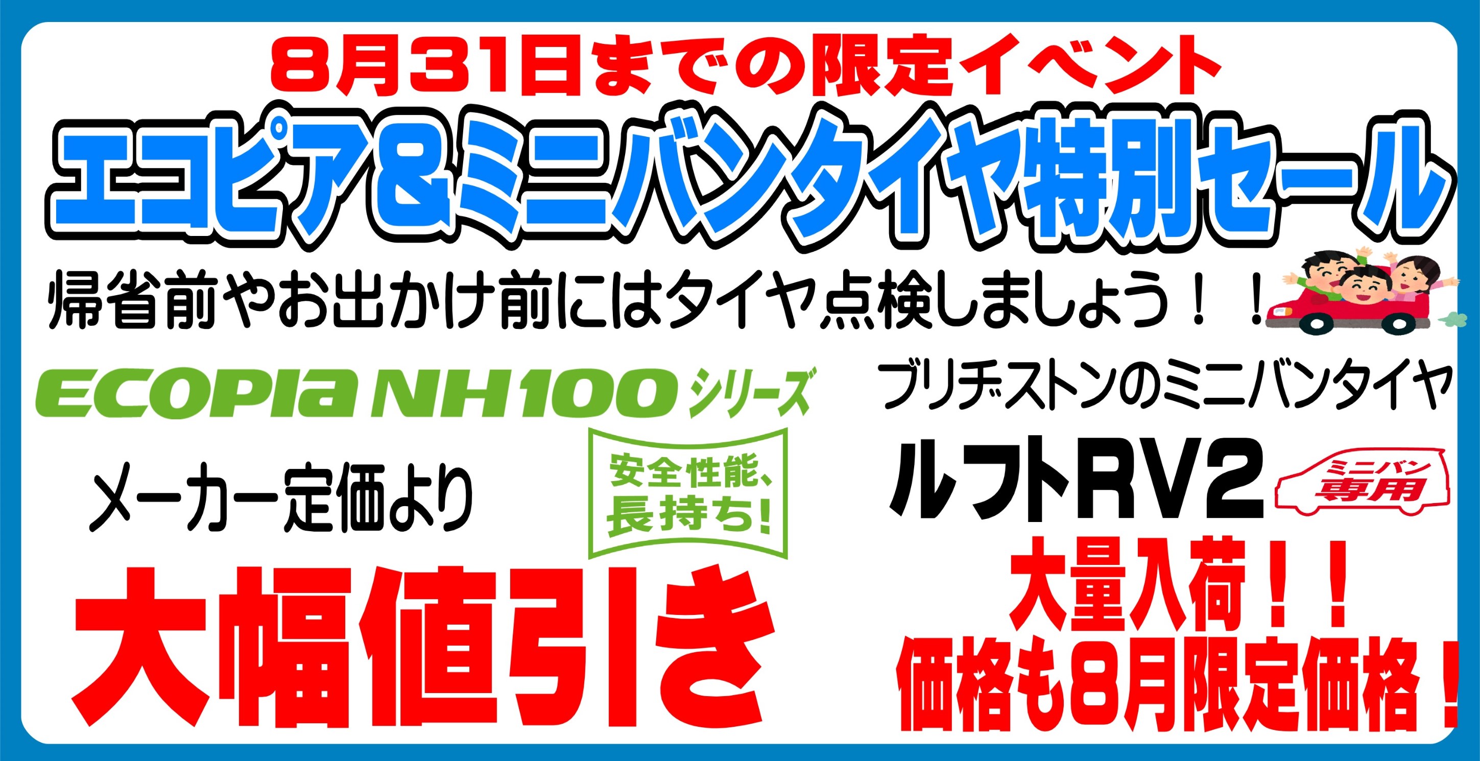 今月末まではミニバンタイヤとエコピアのキャンペーンもおこっています
