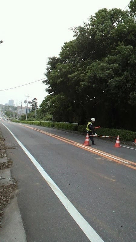 さて警備のおじさんポールをどけていきます、緊張の一瞬です。