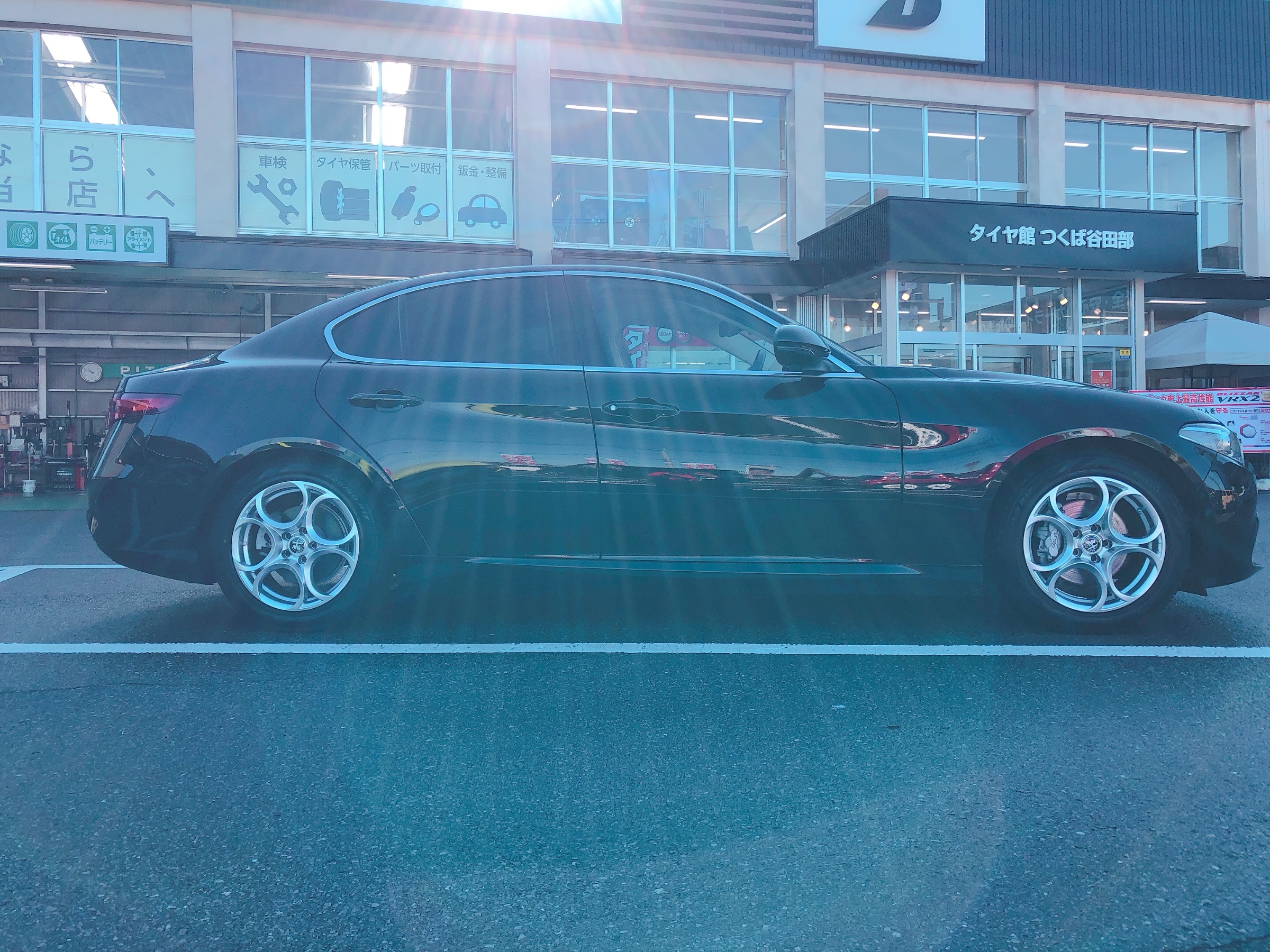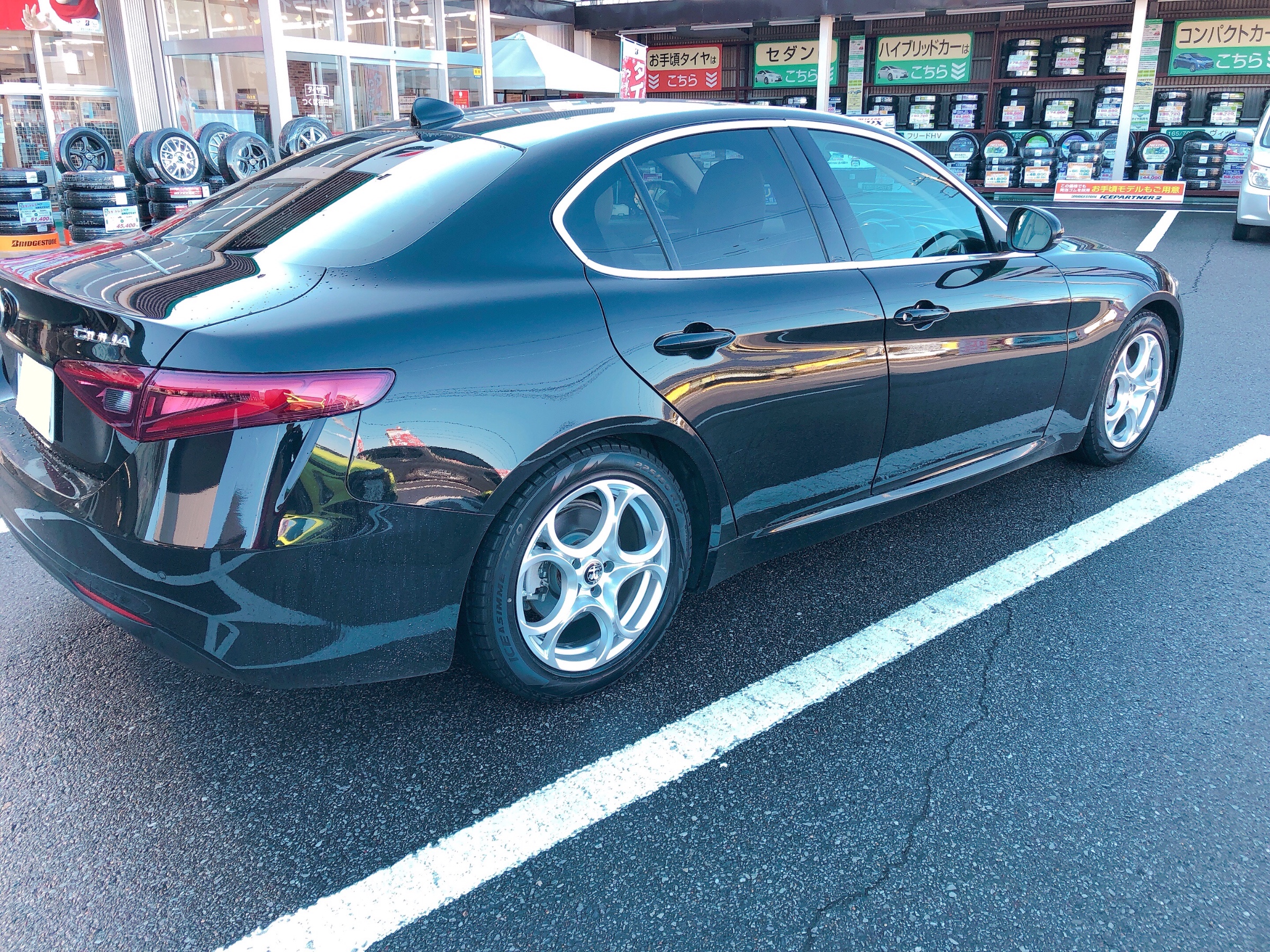 スタートはアルファロメオのジュリアのスタッドレスとホイールのセット品の取付からでした。