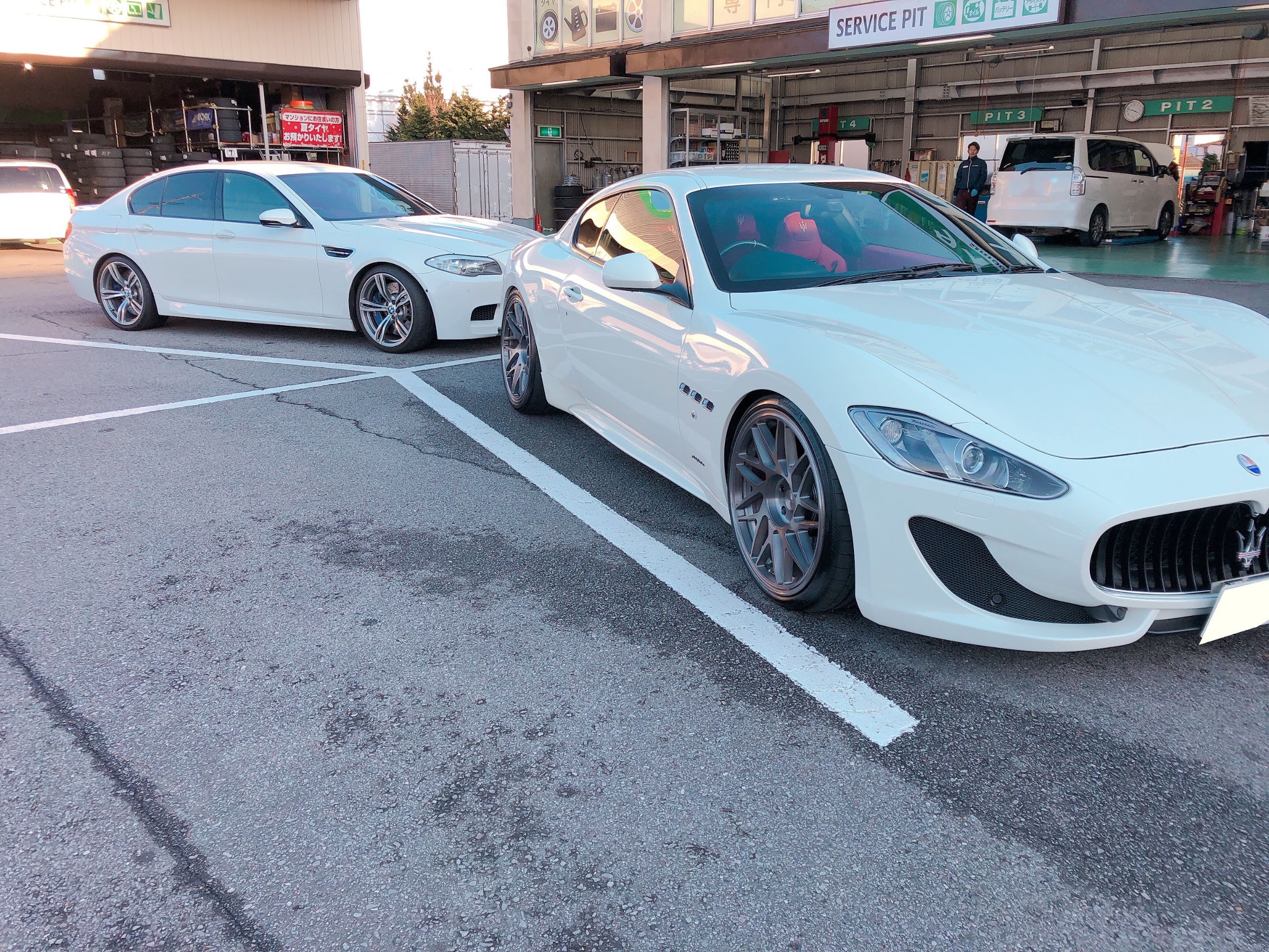 作業が終わり駐車場に止めたら、車検でお預かりのS様のBMWのM5がご来店。