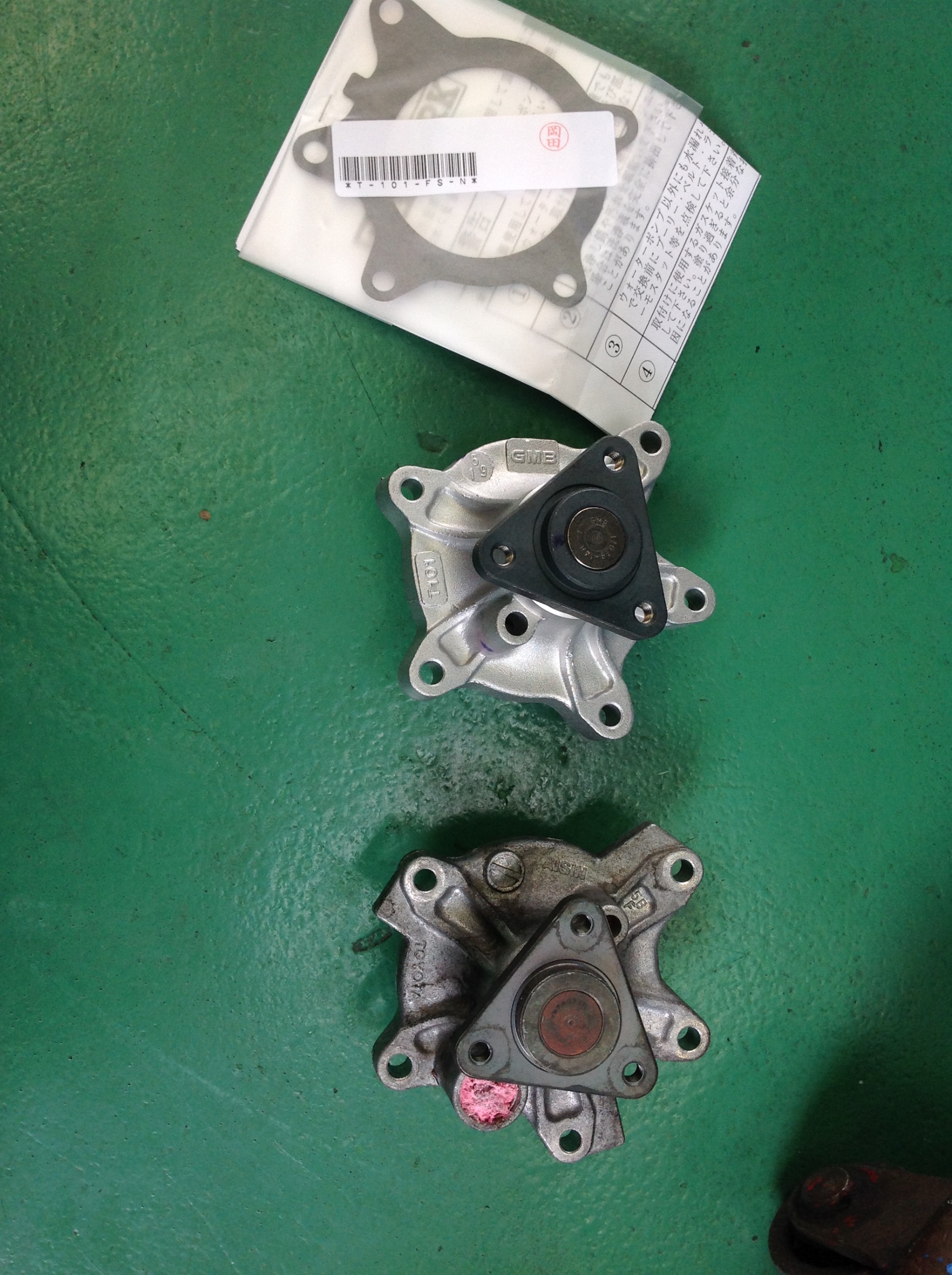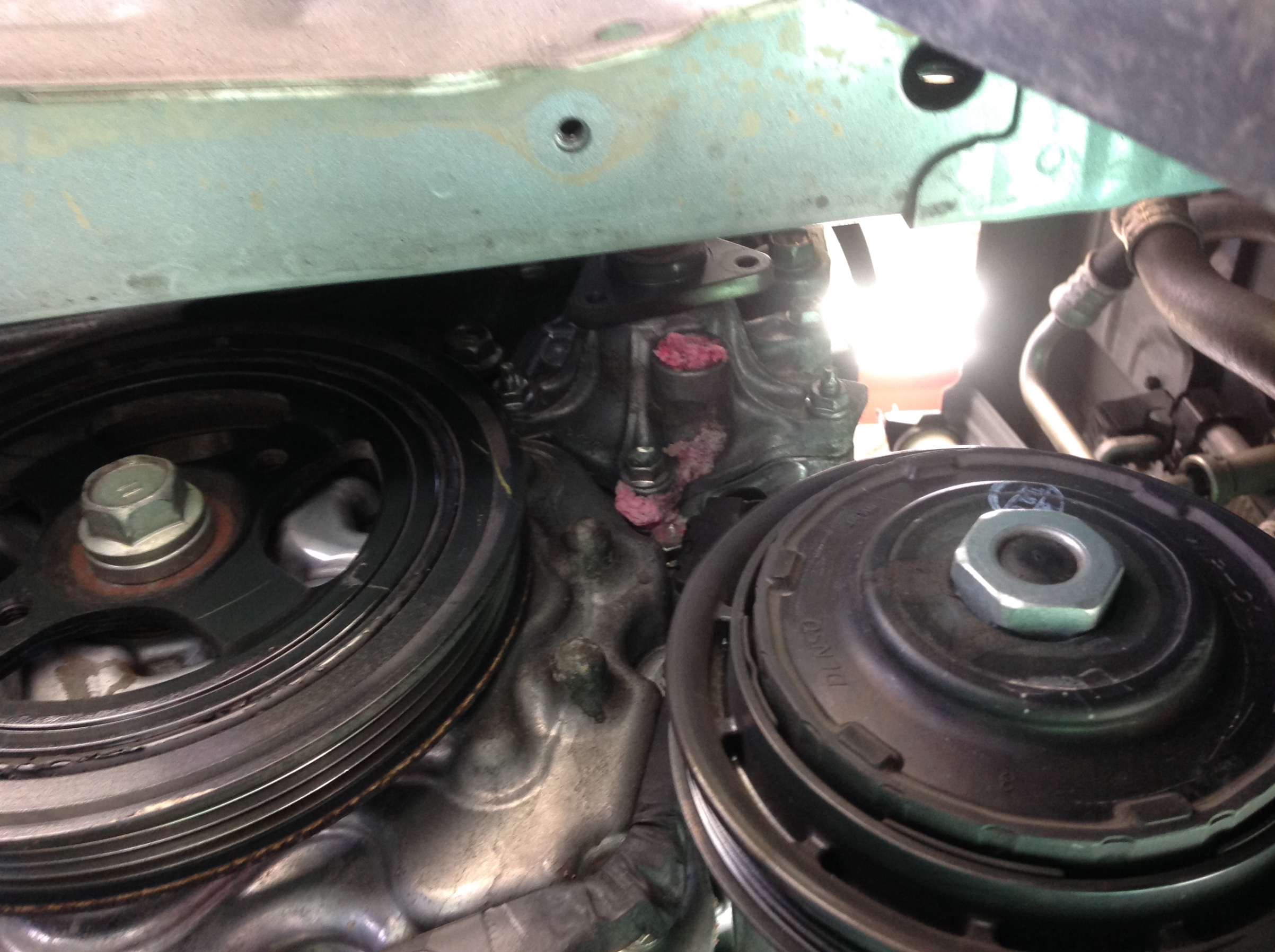 ウォーターポンプから、冷却水が漏れています。