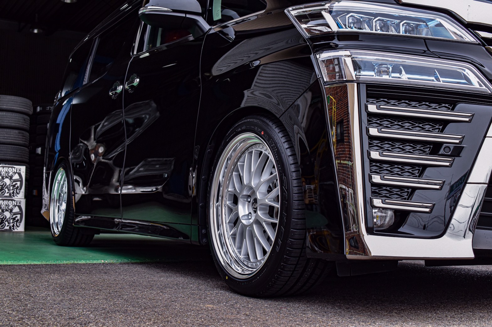 今回、ご紹介させていただくのは、ヴェルファイアにアルミホイール取付のご紹介になります。