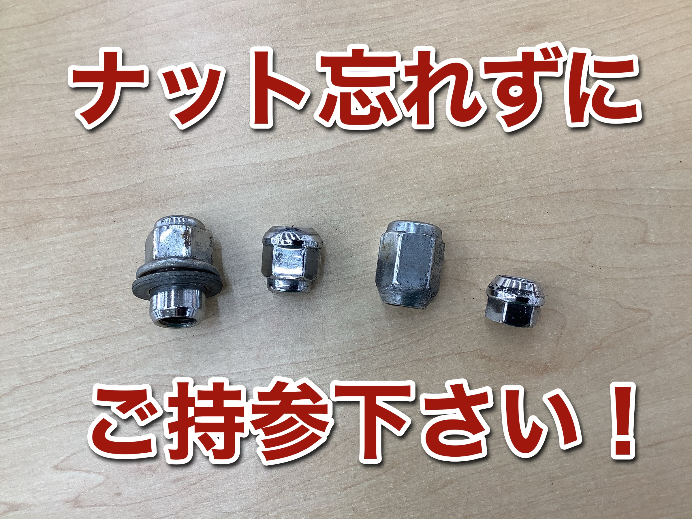 タイヤ脱着でご来店のお客様は、ナットや、冬用ワイパーなど忘れずにご持参下さいね♪