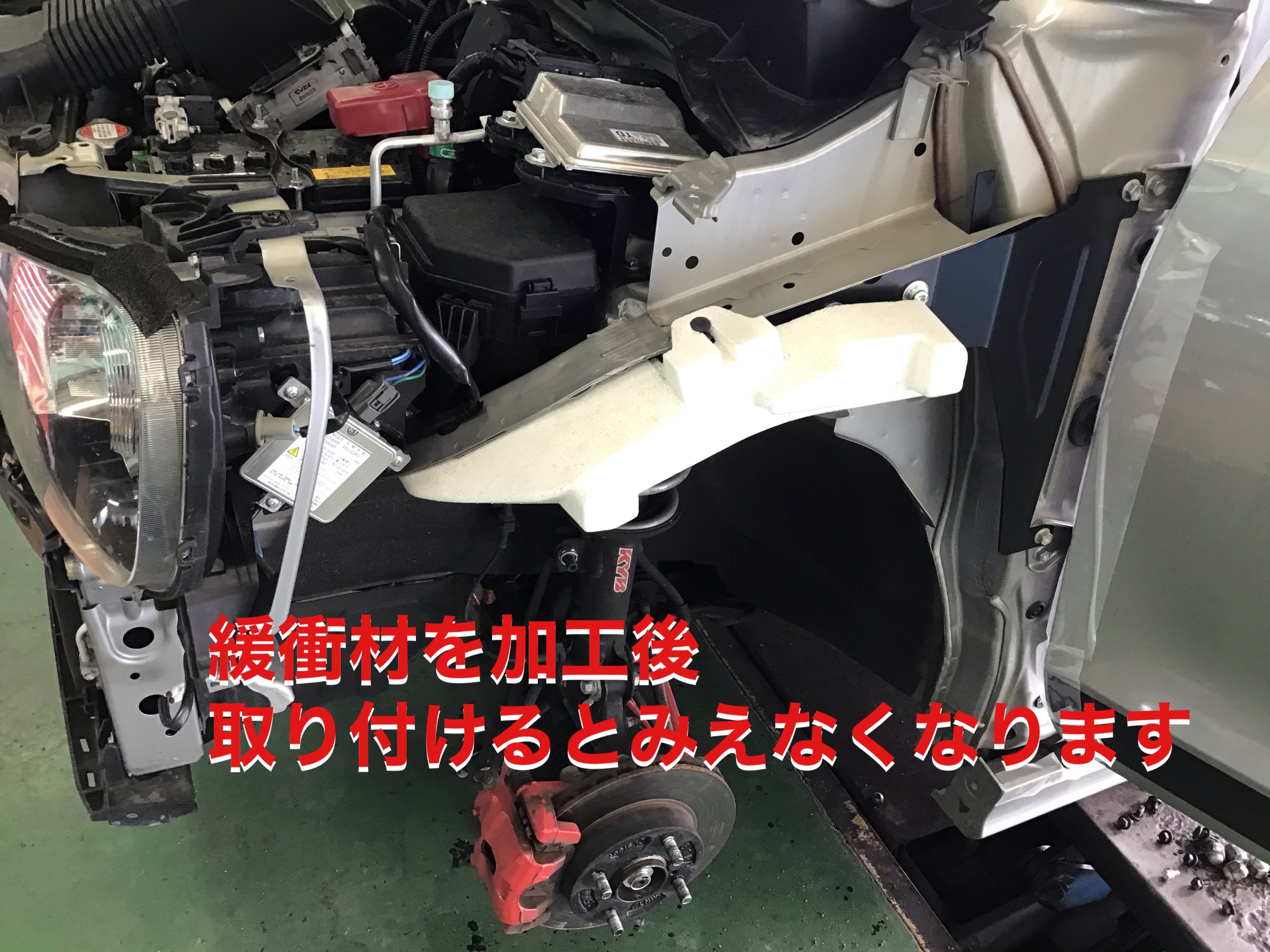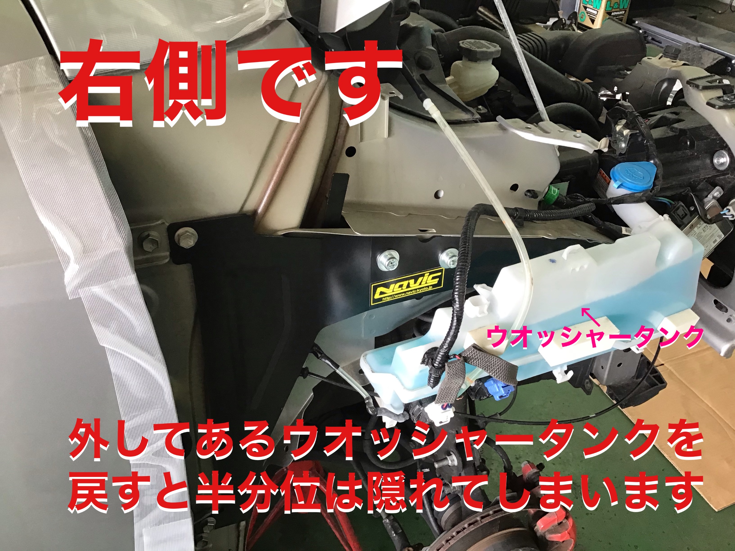 フロントフェンダーの内側に取り付けるので普段は見えなくなります。