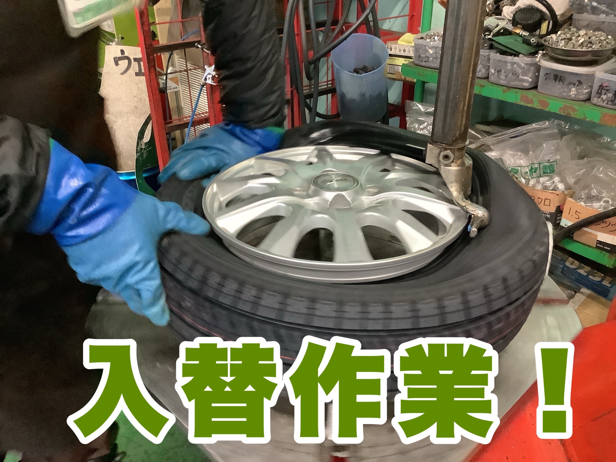 新品タイヤを組み付けしていきます。