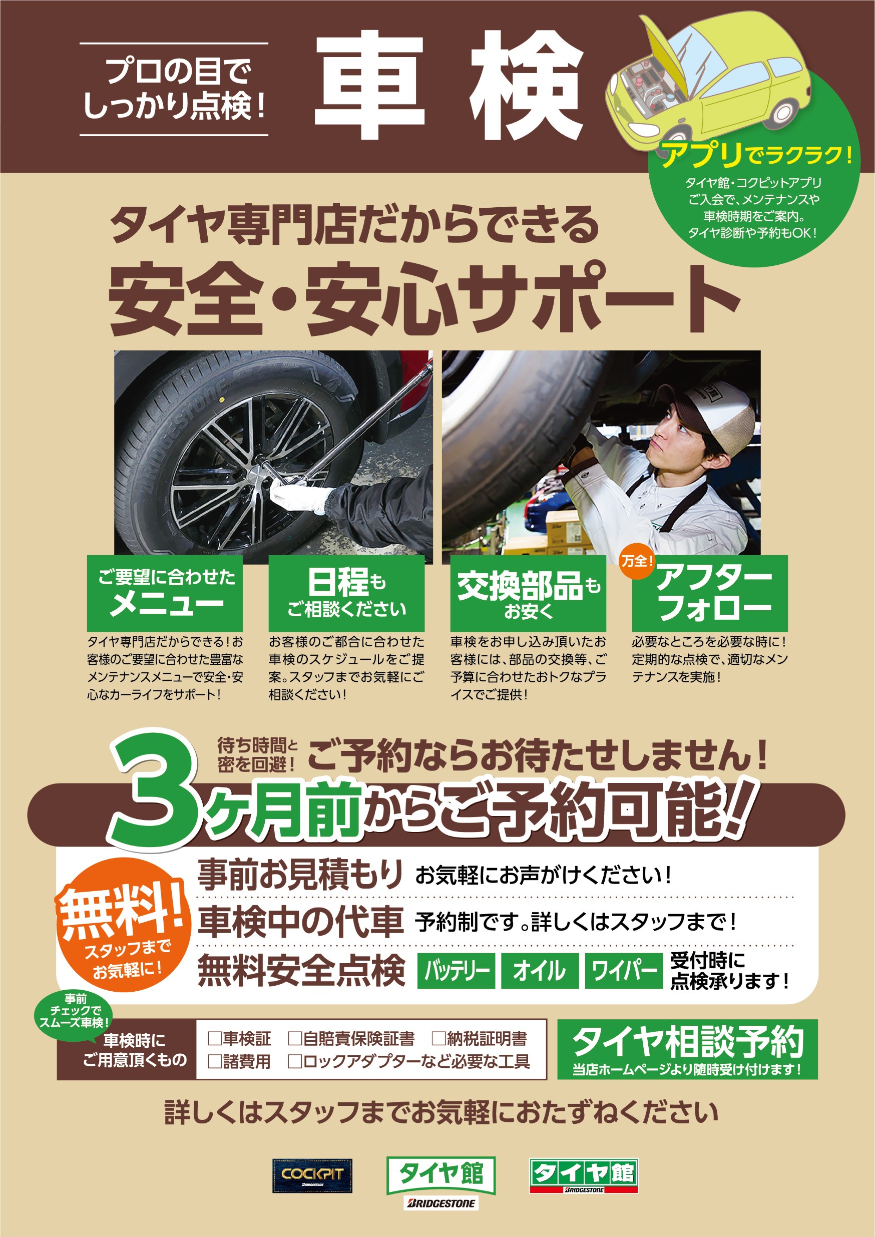 車検・メンテナンスはぜひタイヤ館鶴岡で!!