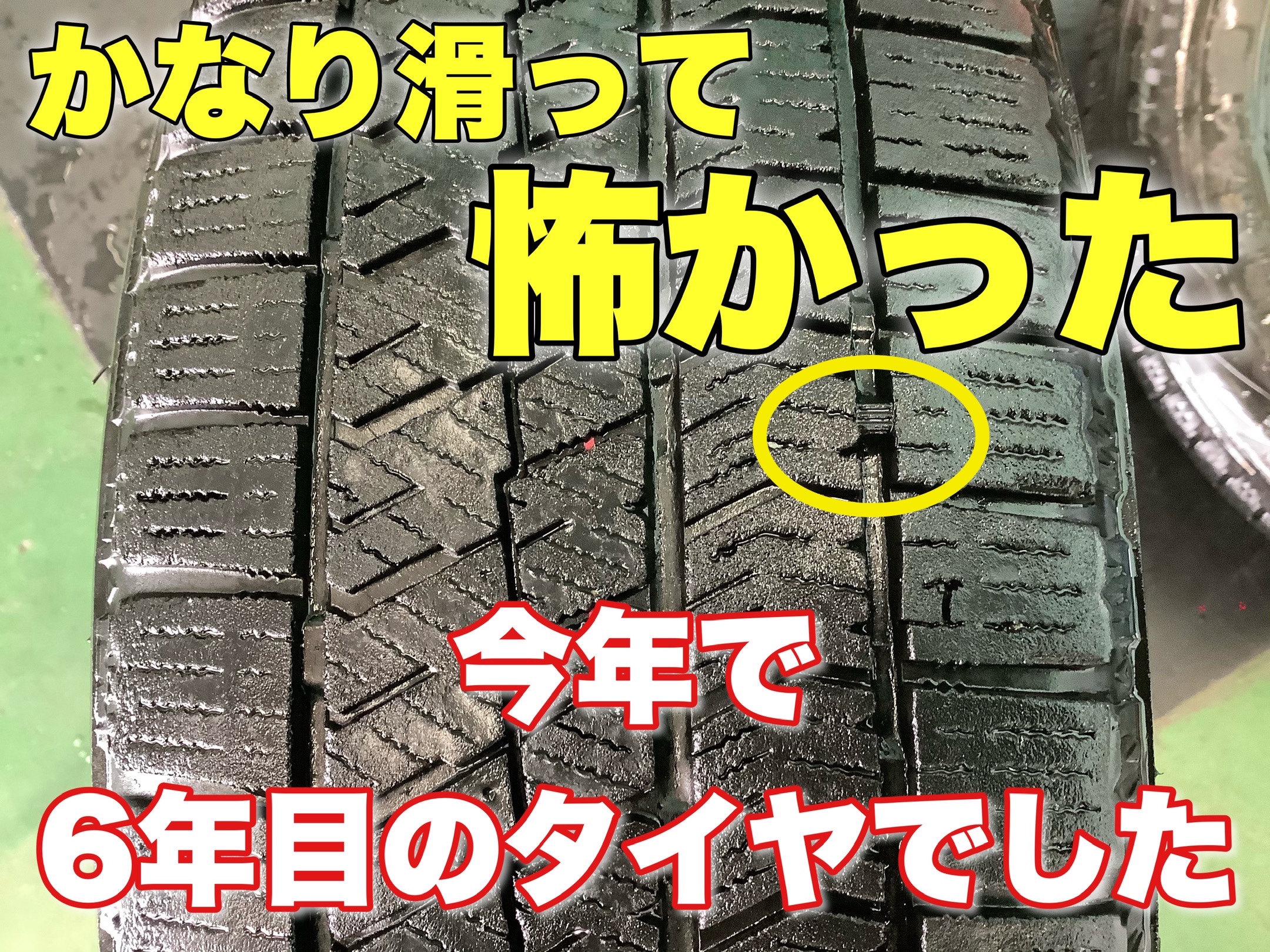 スタッドレスタイヤの点検をしてみると今年で6年目のタイヤを使用されていました。