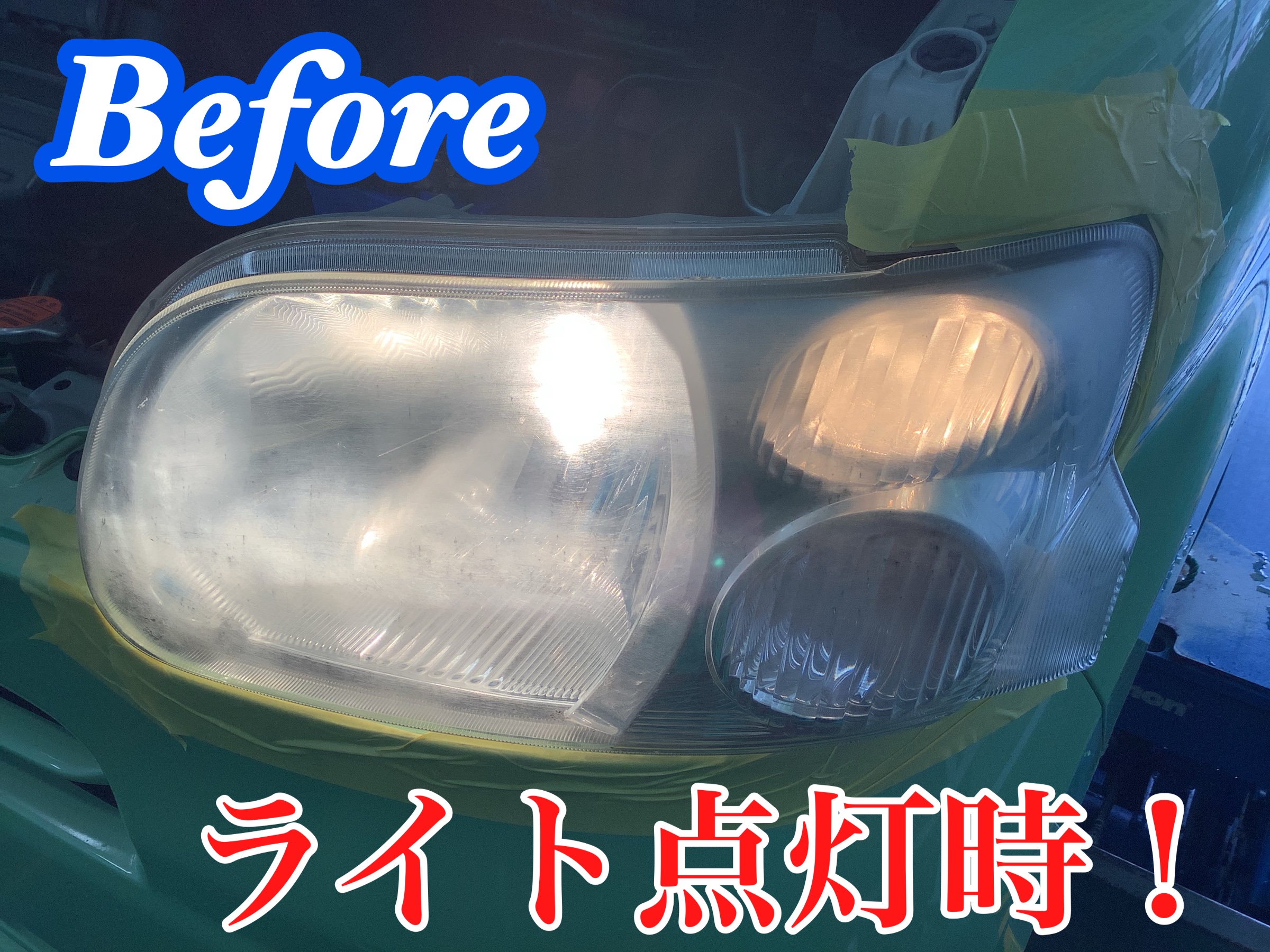 特に左側のヘッドライトがだいぶくすんでいる状態でした。