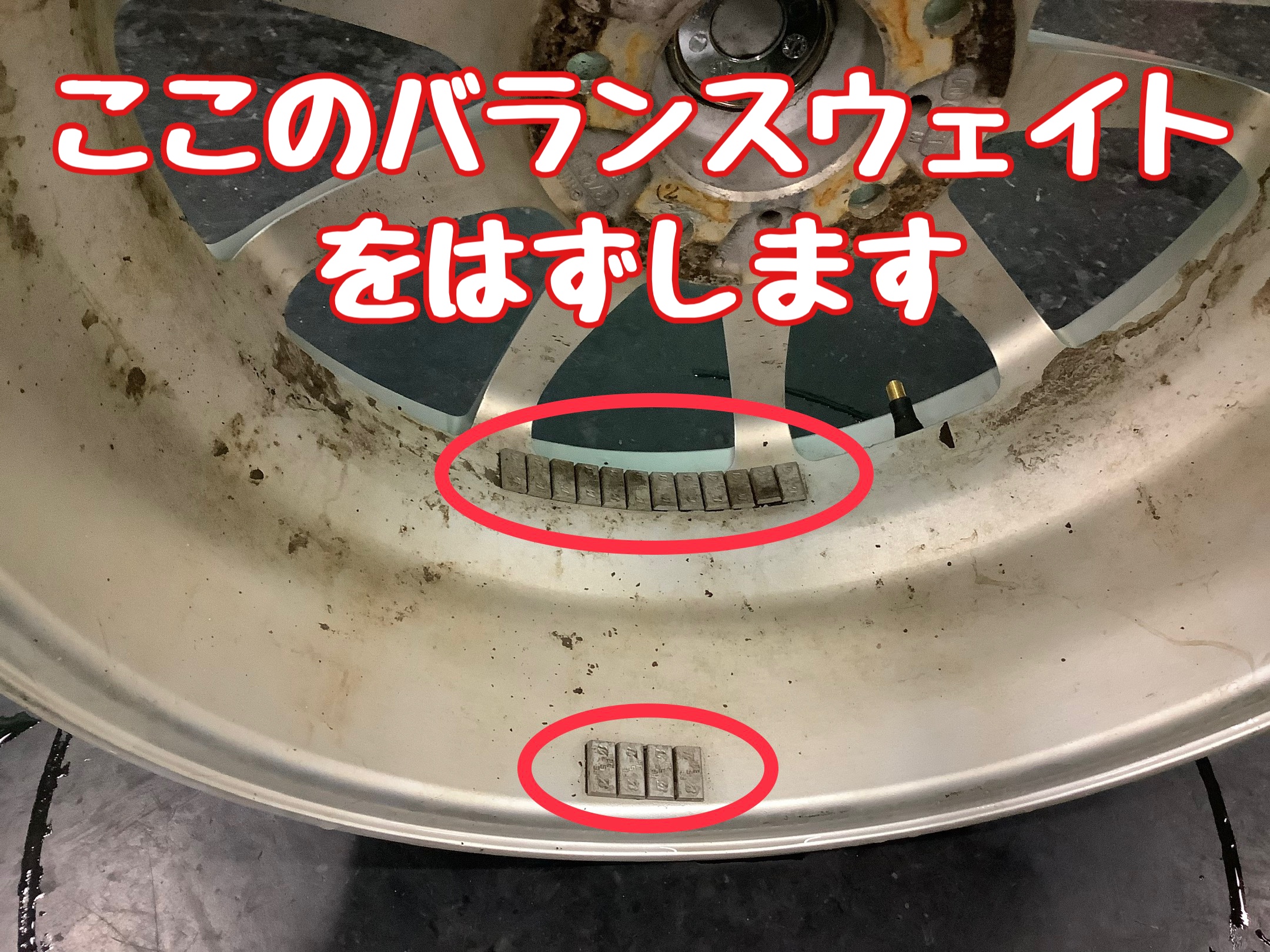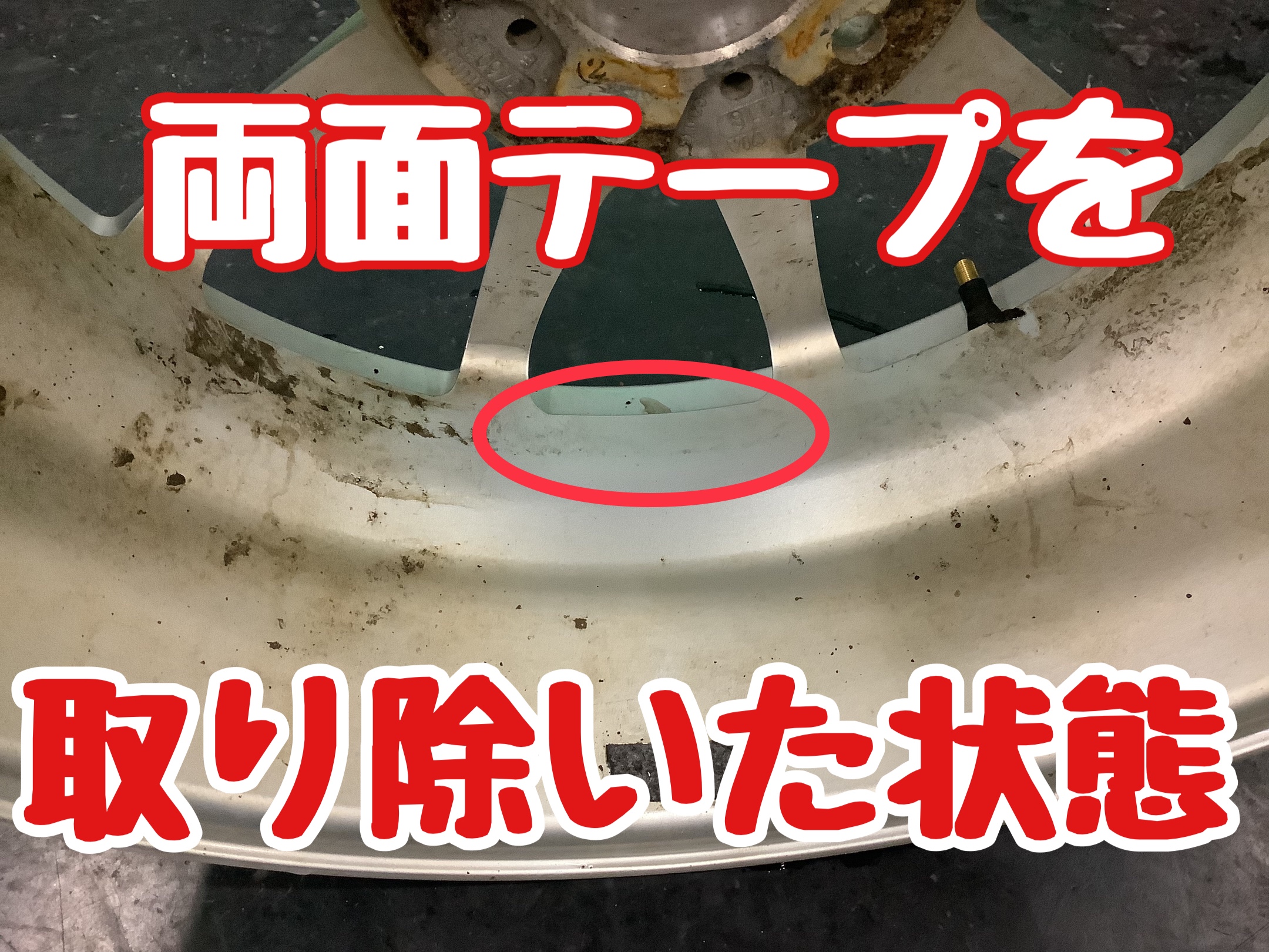 元々あったテープの残りもキレイにし、バランスウェイトを貼りやすくします。