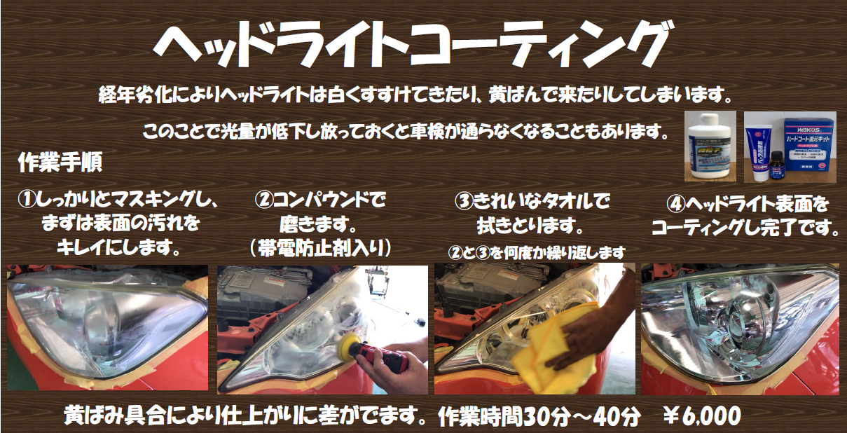 ヘッドライトコーティングも人気です。