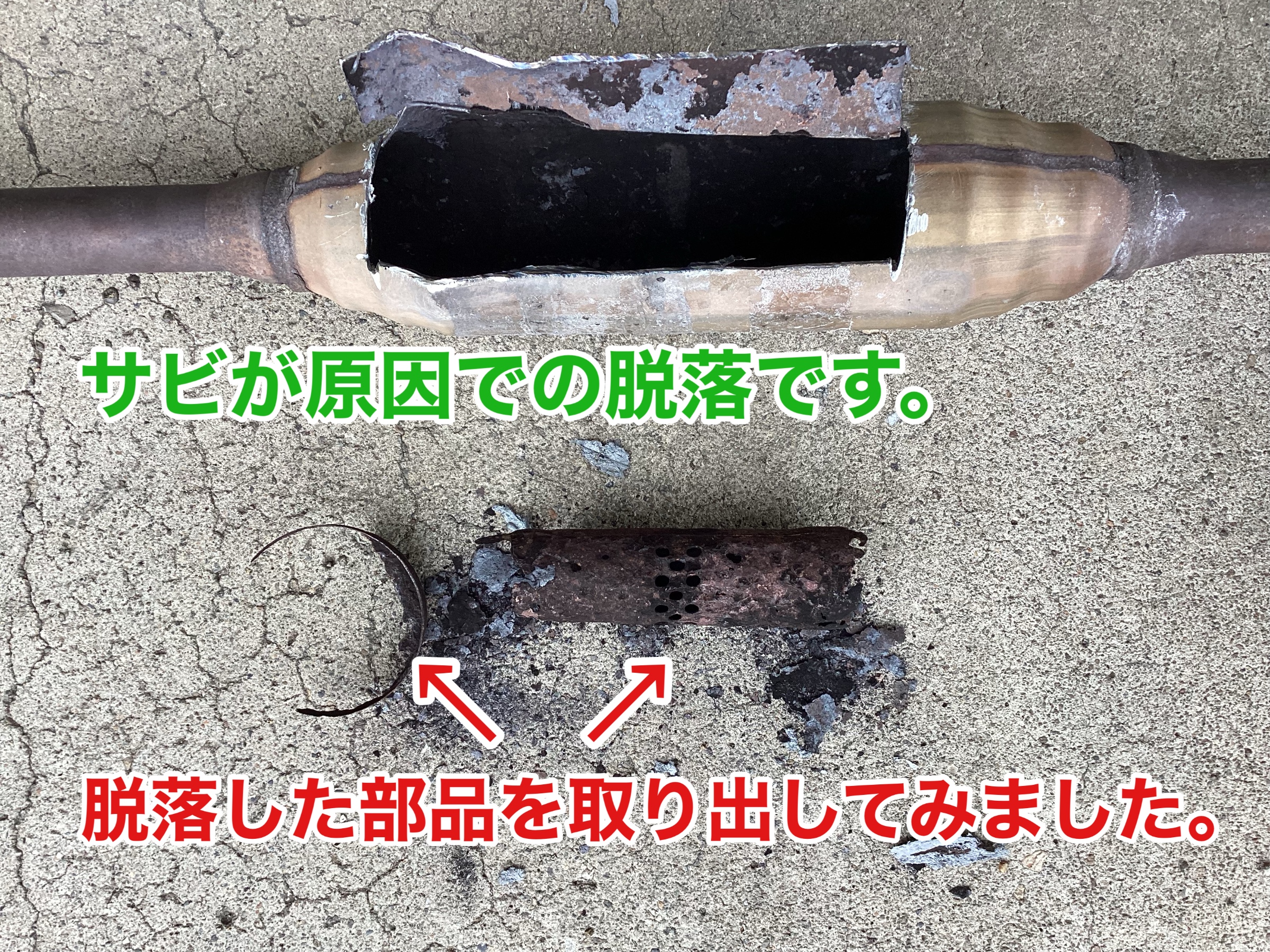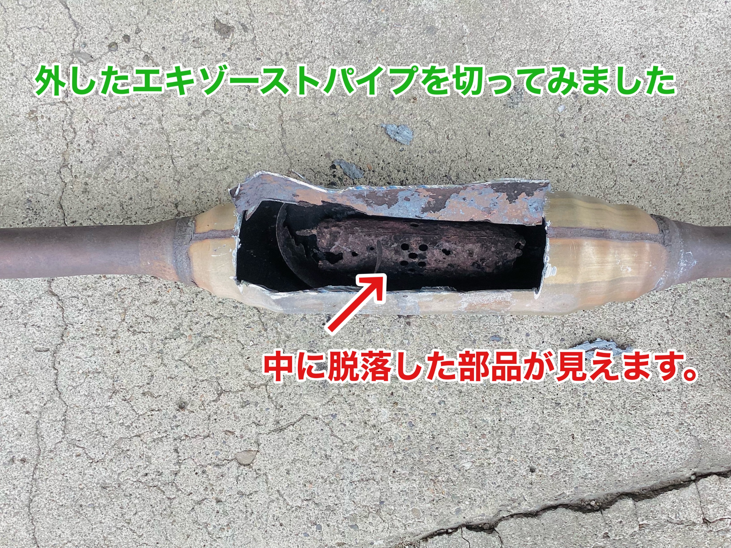 リフトアップしてみるとマフラーの前についているエキゾーストパイプより聞こえてくるので