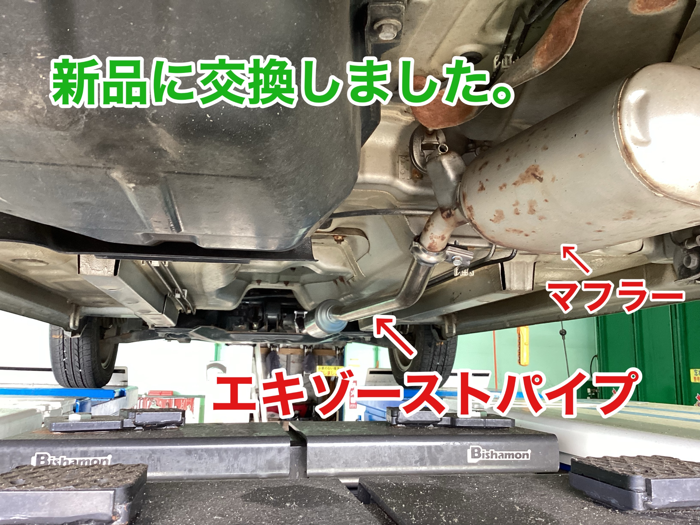 新品のエキゾーストパイプに交換しました。