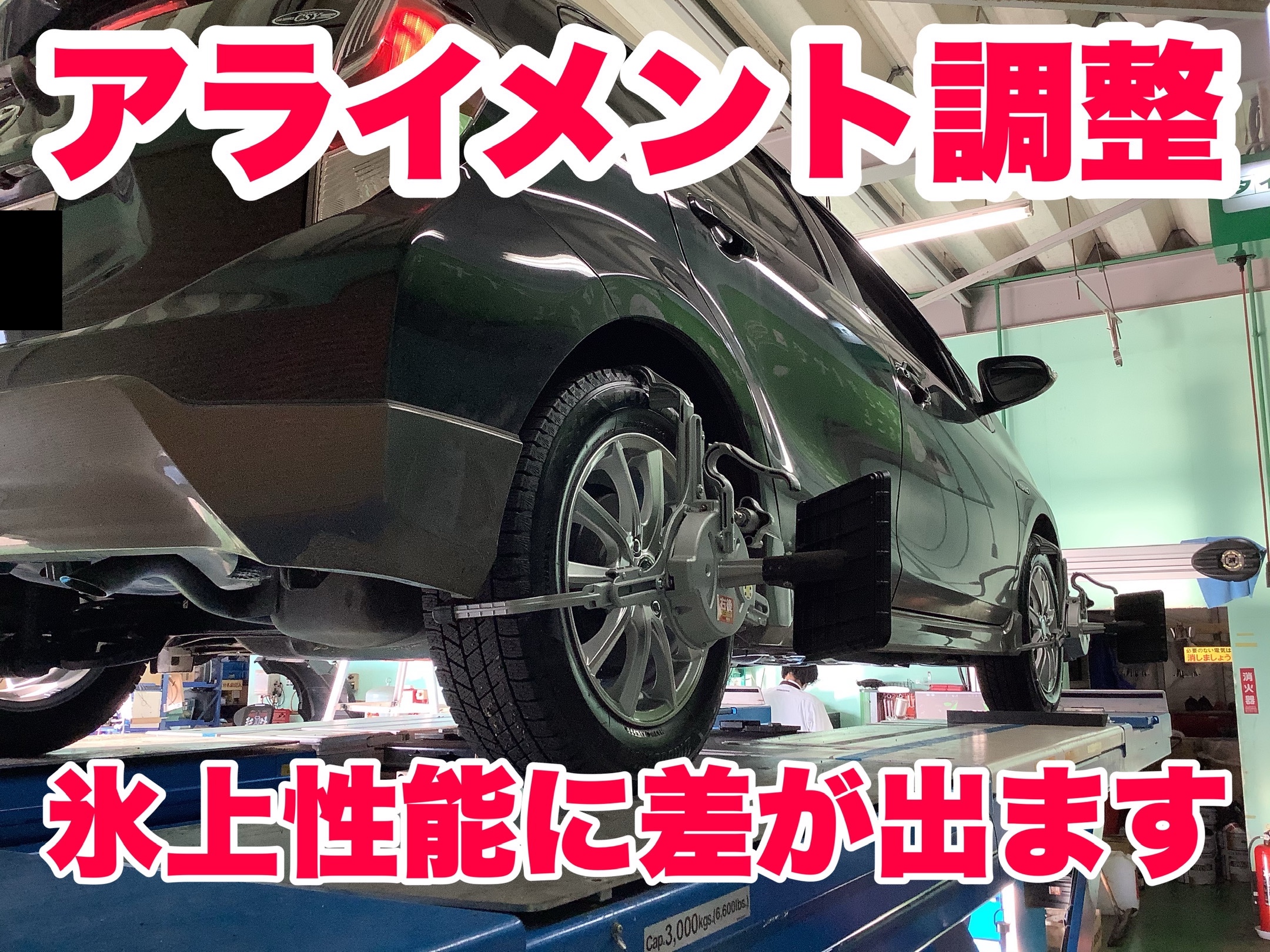 せっかく性能のイイタイヤを取付しても、アライメントがズレていると同じ車種、同じタイヤでも氷上性能に差がでます。