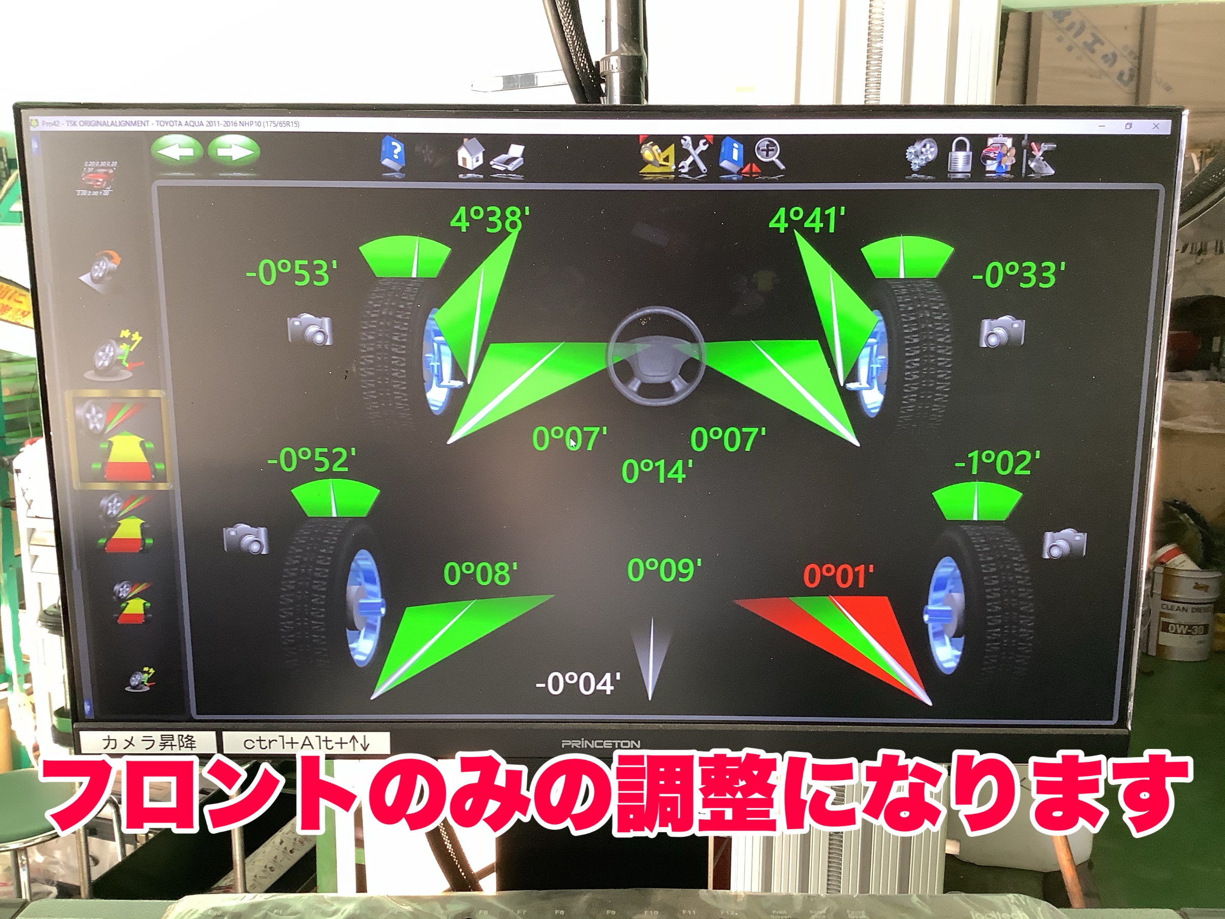 調整を行うことにより、クルマそれぞれの基準値に合わせます。
