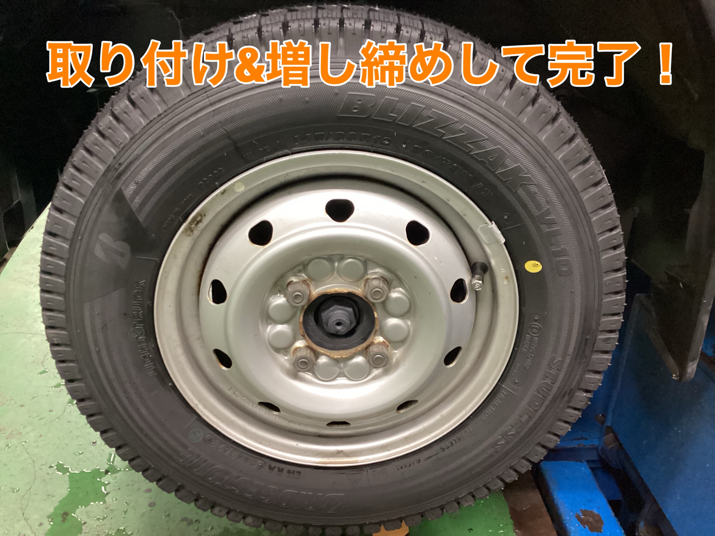 エブリイにタイヤを取り付けし、増し締めを行い作業完了です!